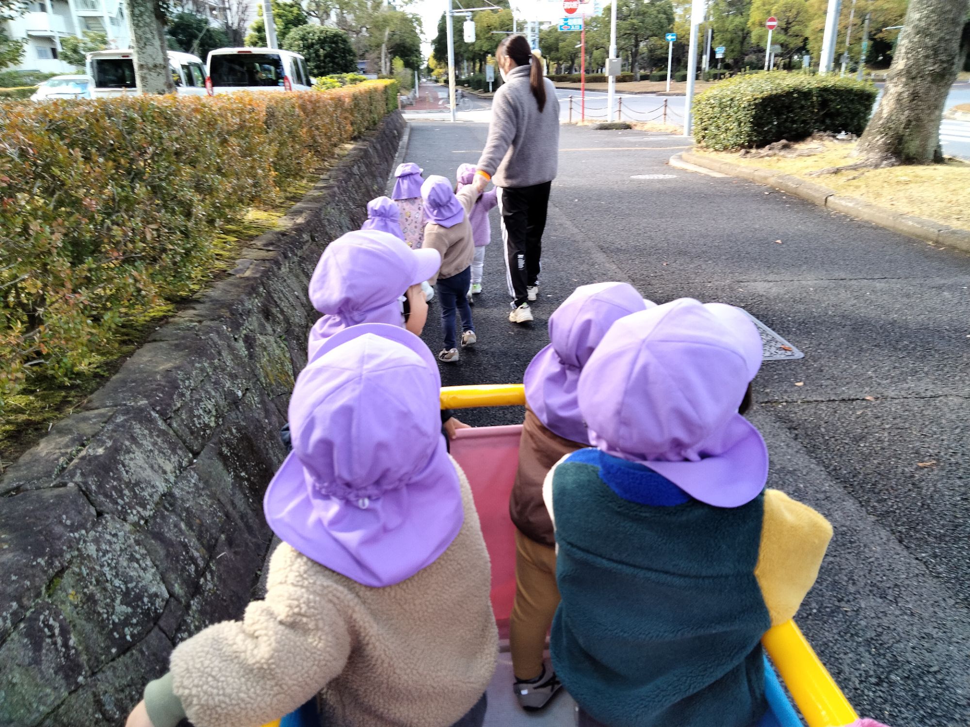 進級へ向けて、友だちとペアになって手を繋ぎ歩く練習を始めたにじ組さん🌈交通ルールを守り、左右の確認をしてから道路を渡ったり、手を挙げて横断歩道を渡ったりしています🤚