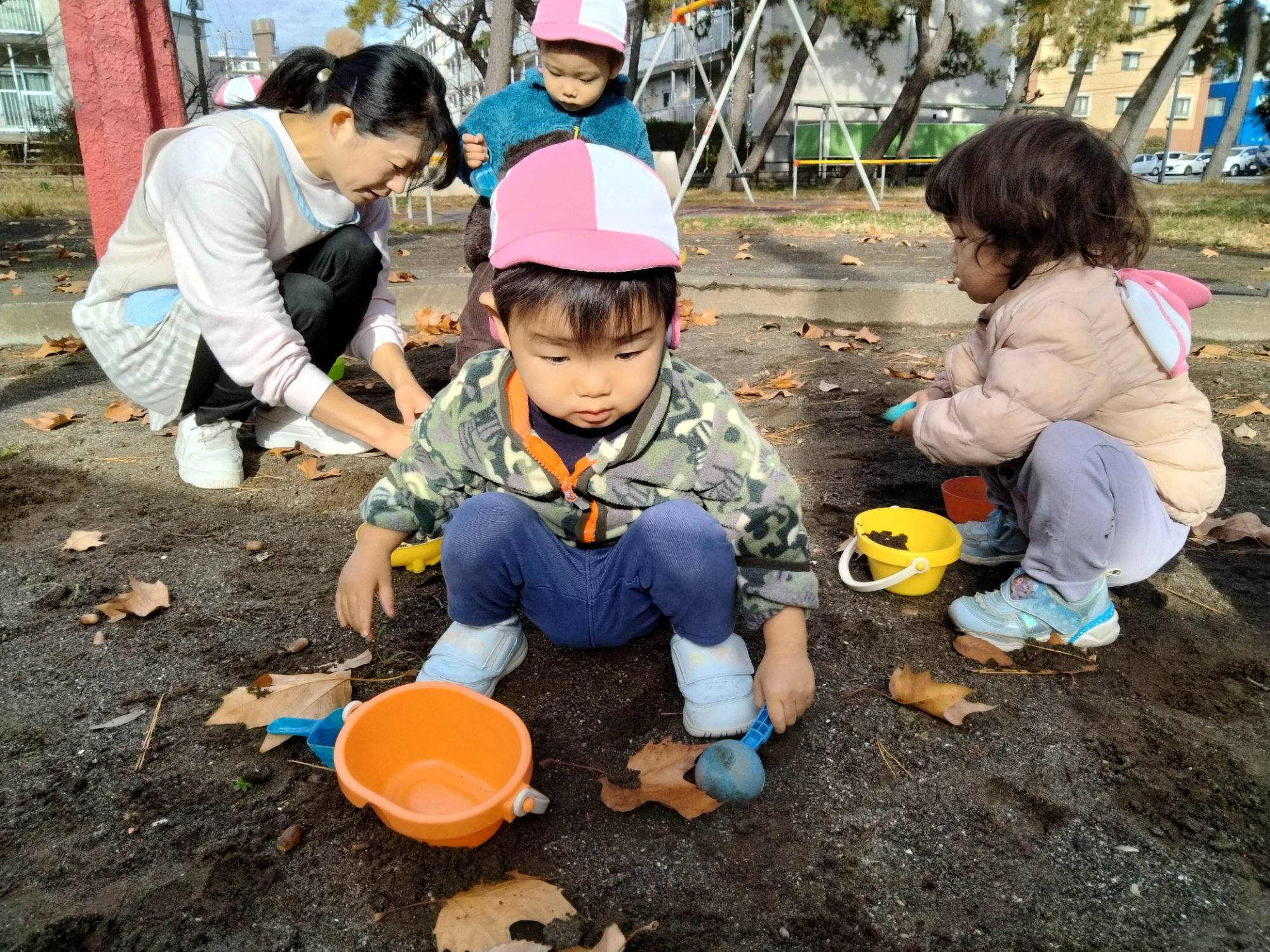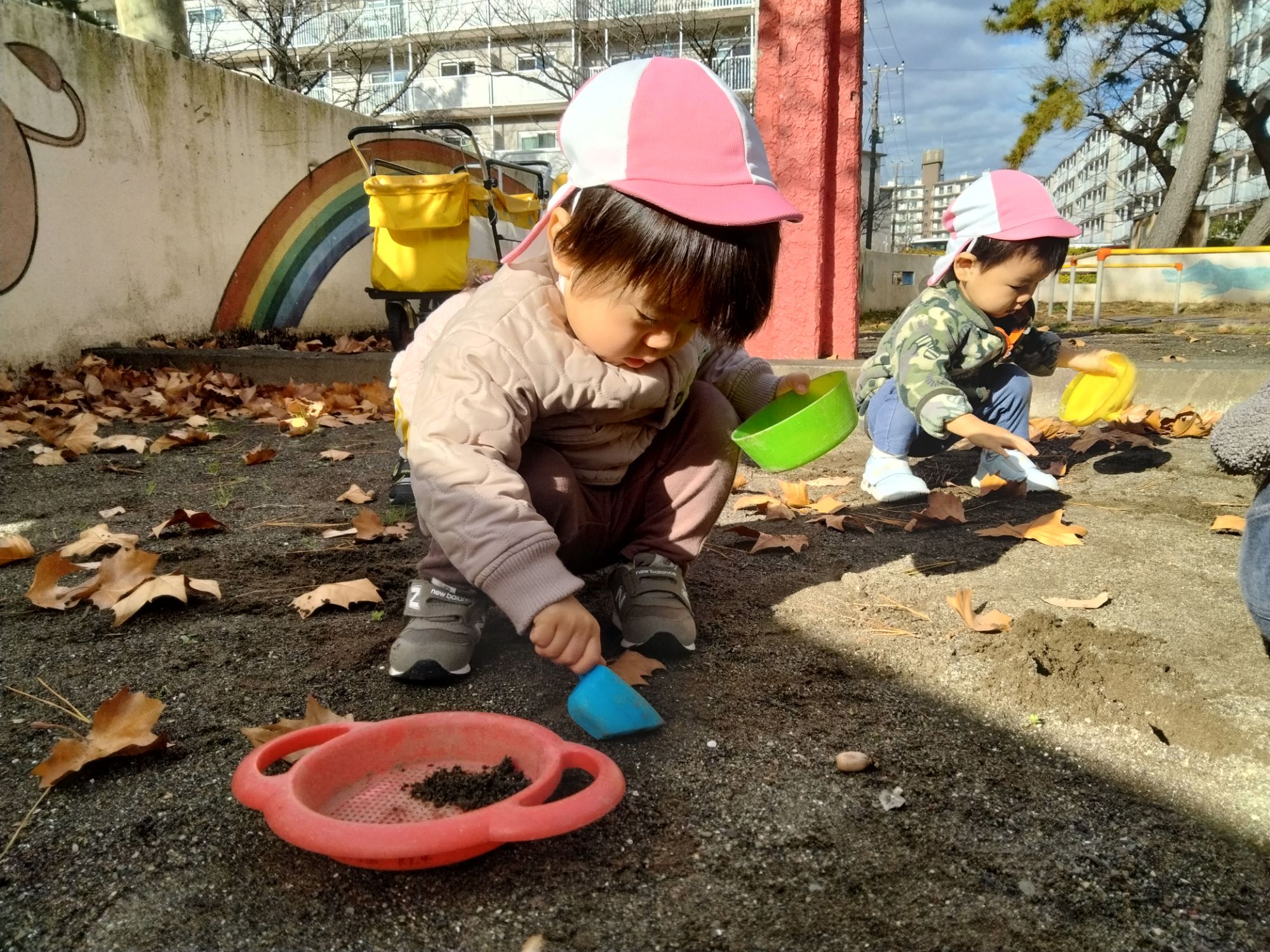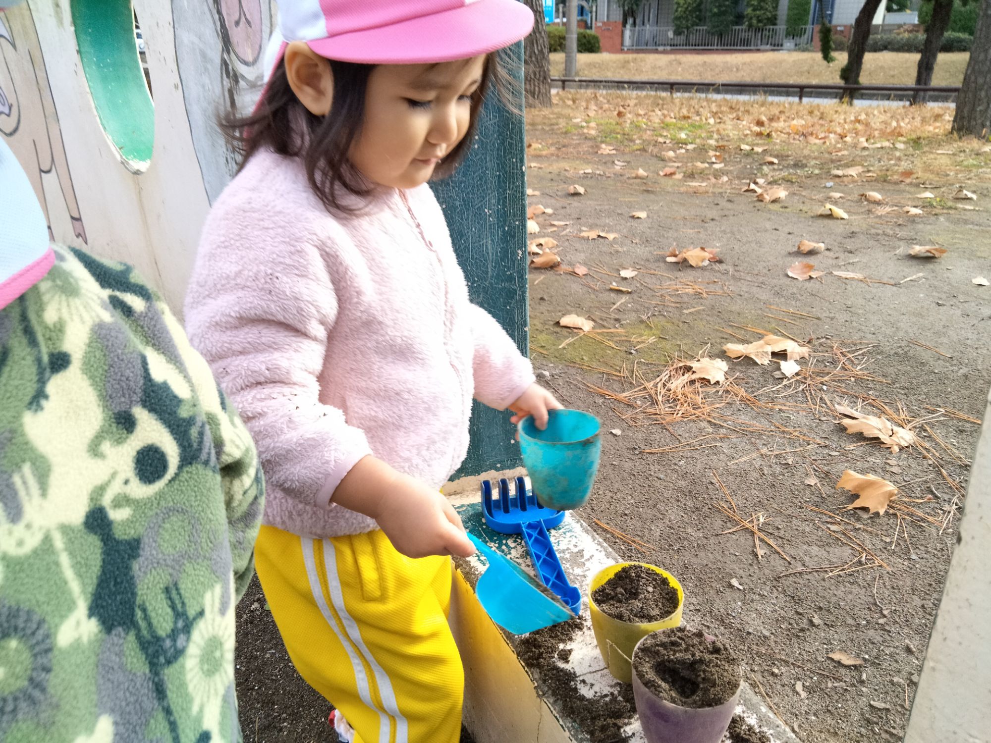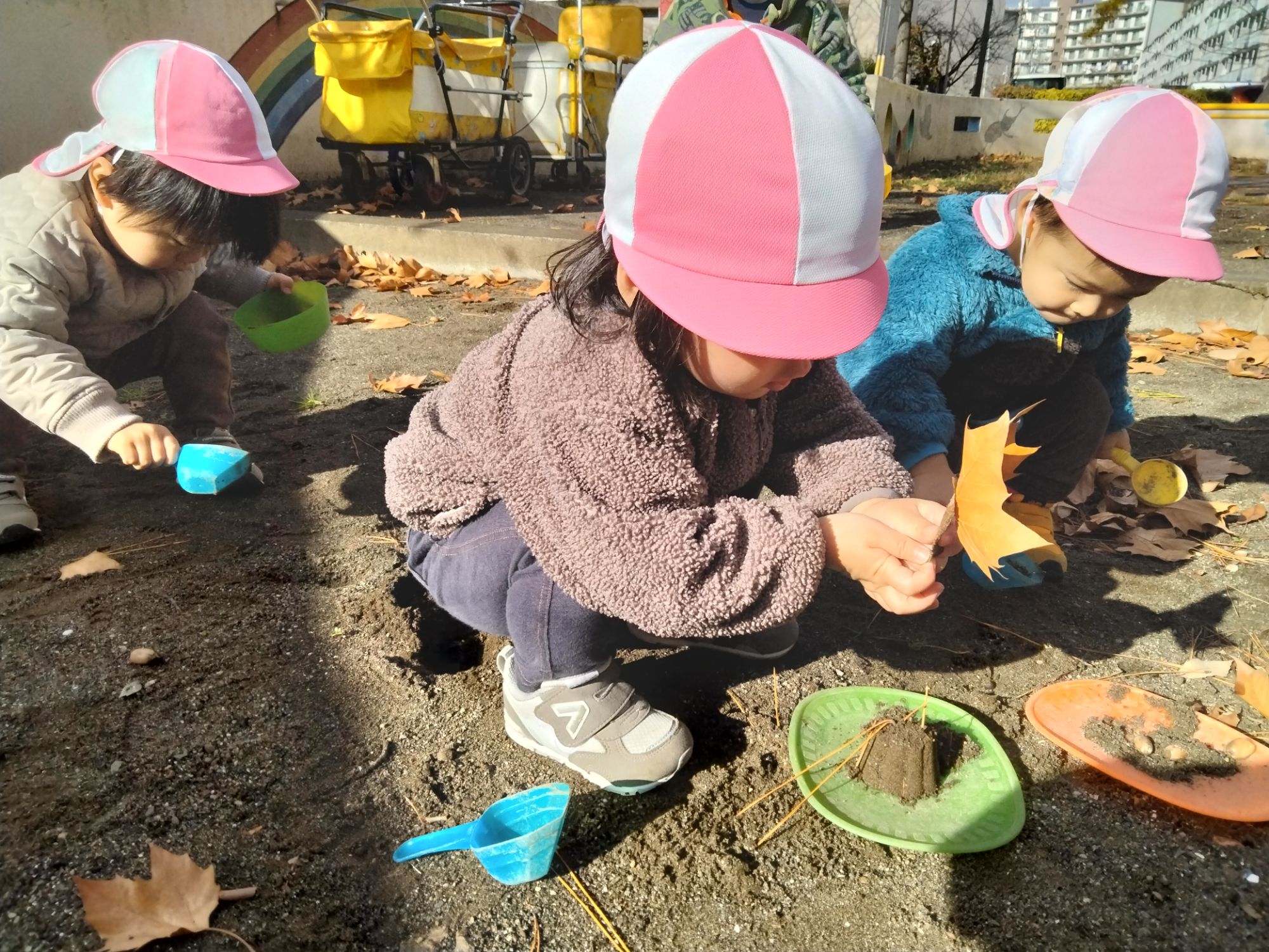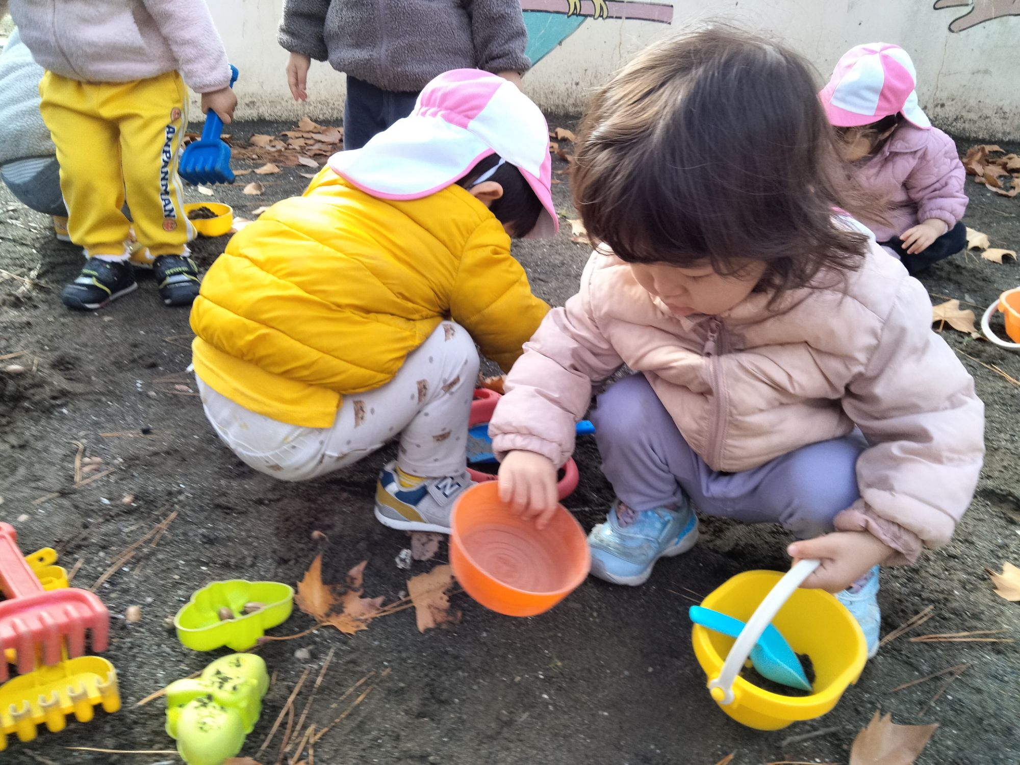 お友だちと協力してお砂をカップにいれてアイスクリーム屋さんごっこ🍦