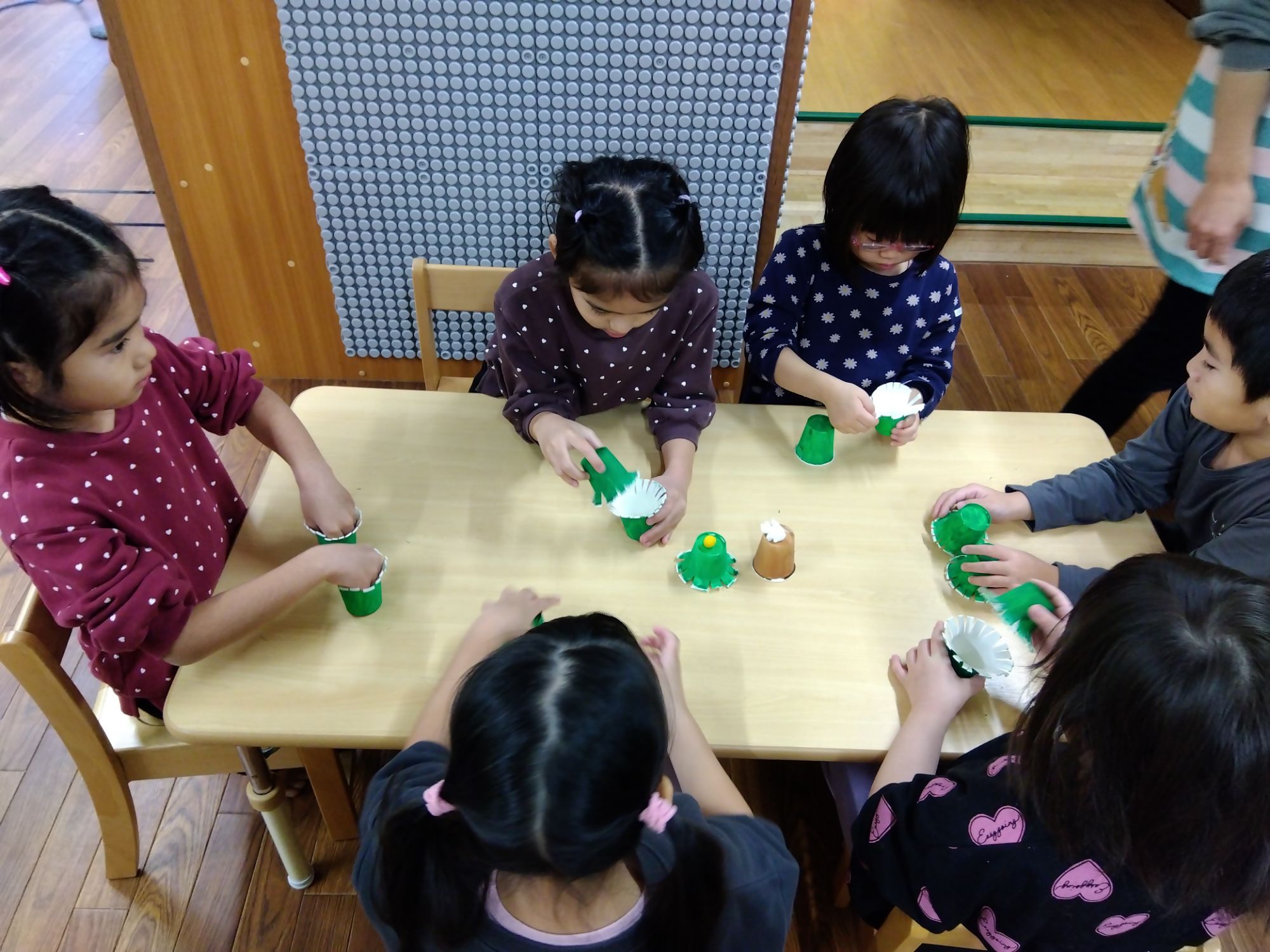 上、下、横、後ろなど、紙コップの形(立体)を予測しながらの作業になるので、空間認知能力も育まれていきます🤗