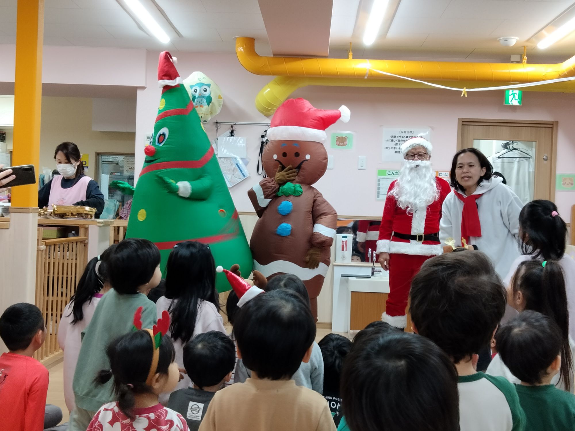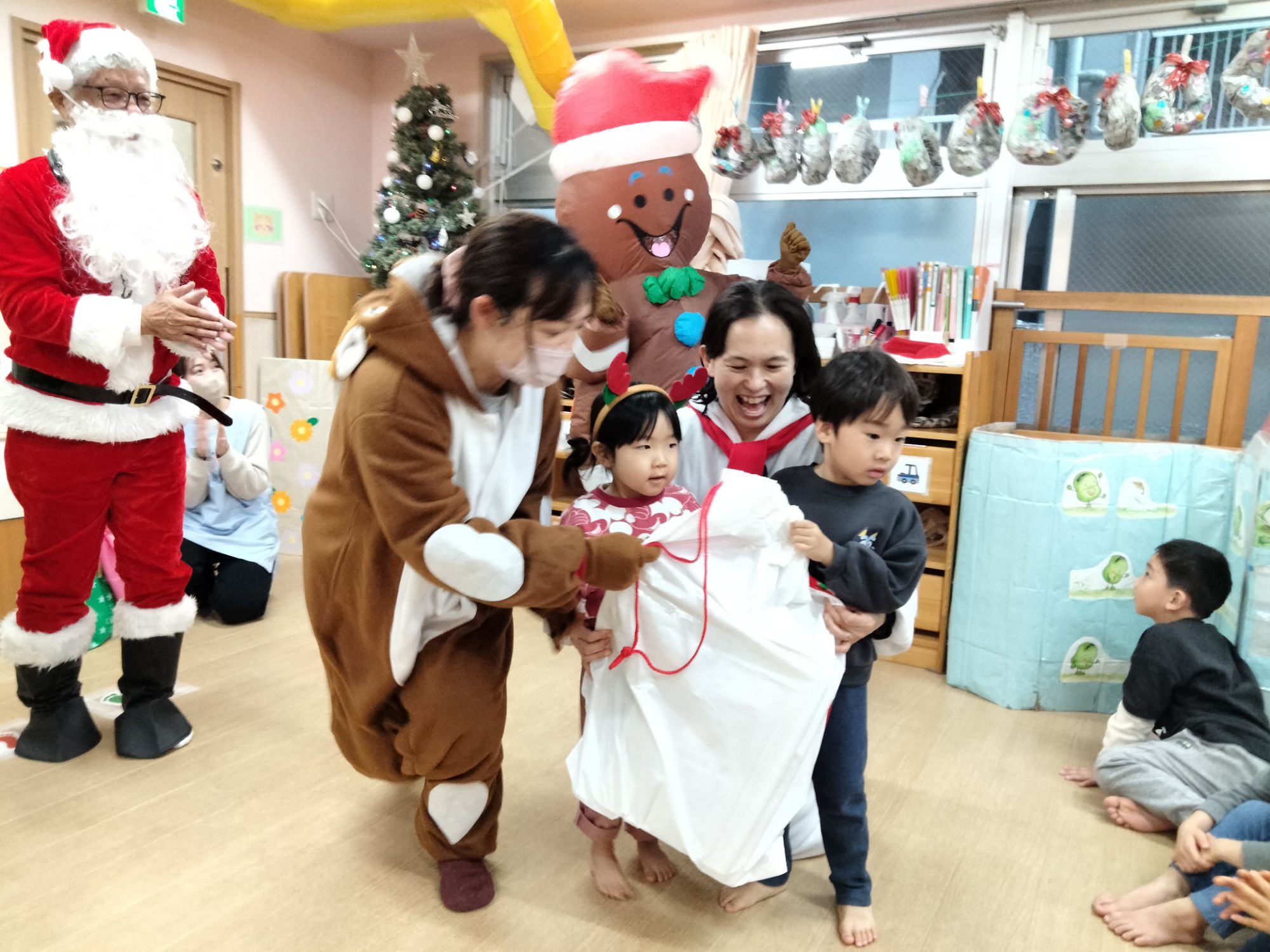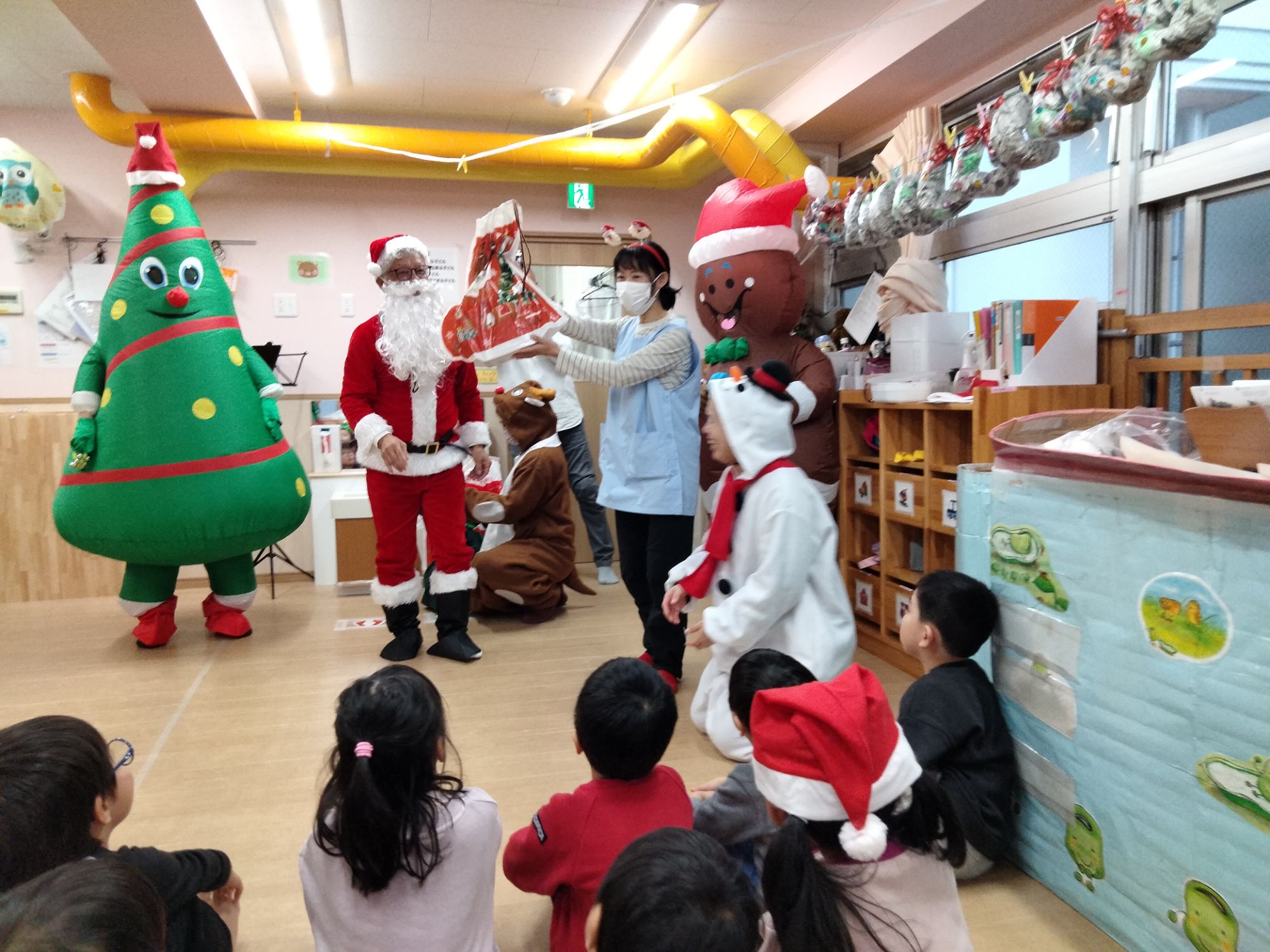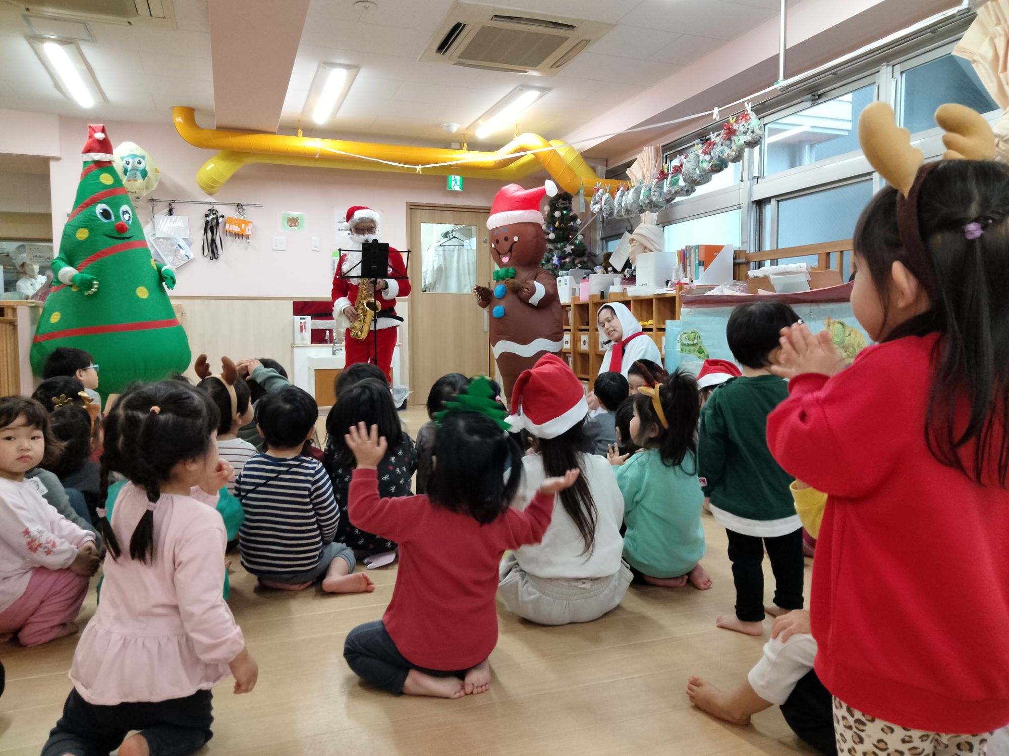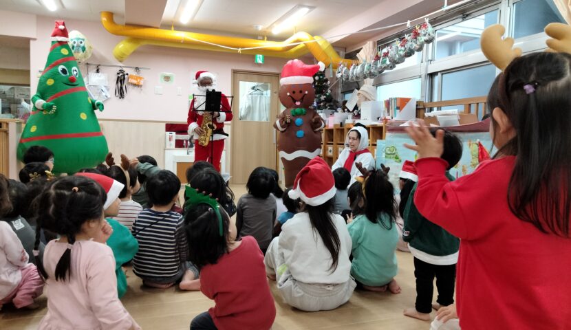 サンタさんやジンジャーマン、ツリーマンが来てくれた保育園のクリスマス会🎶