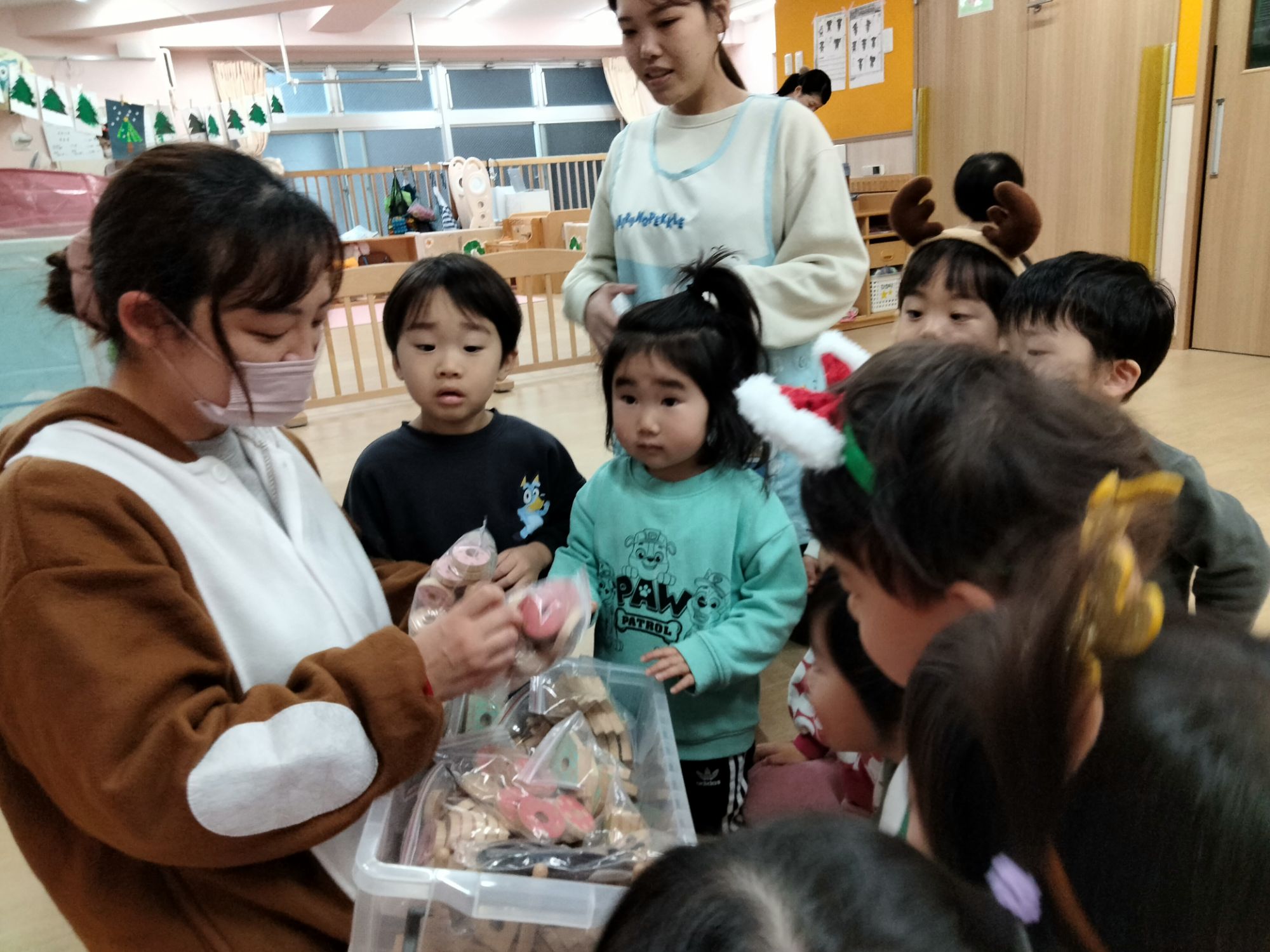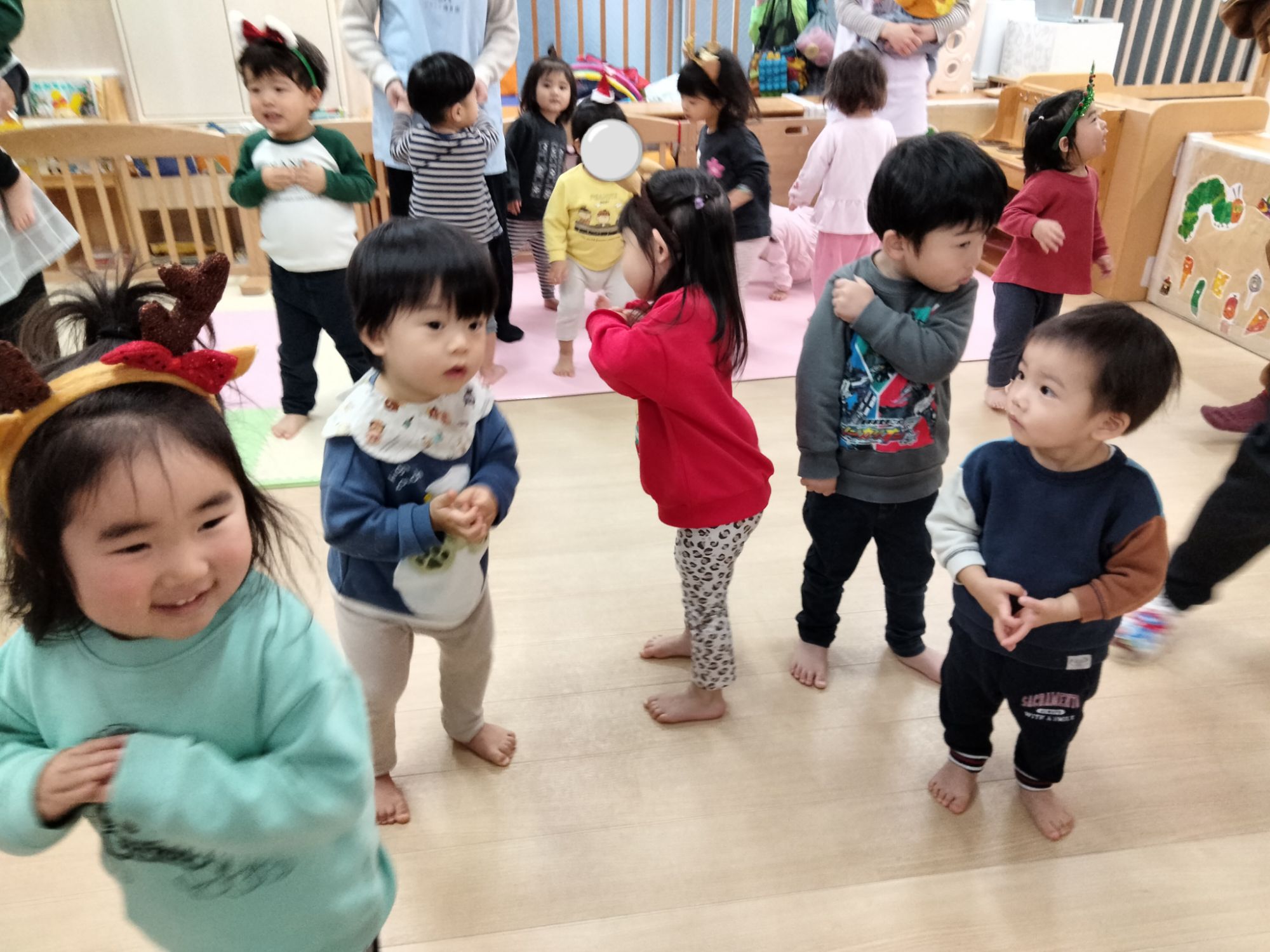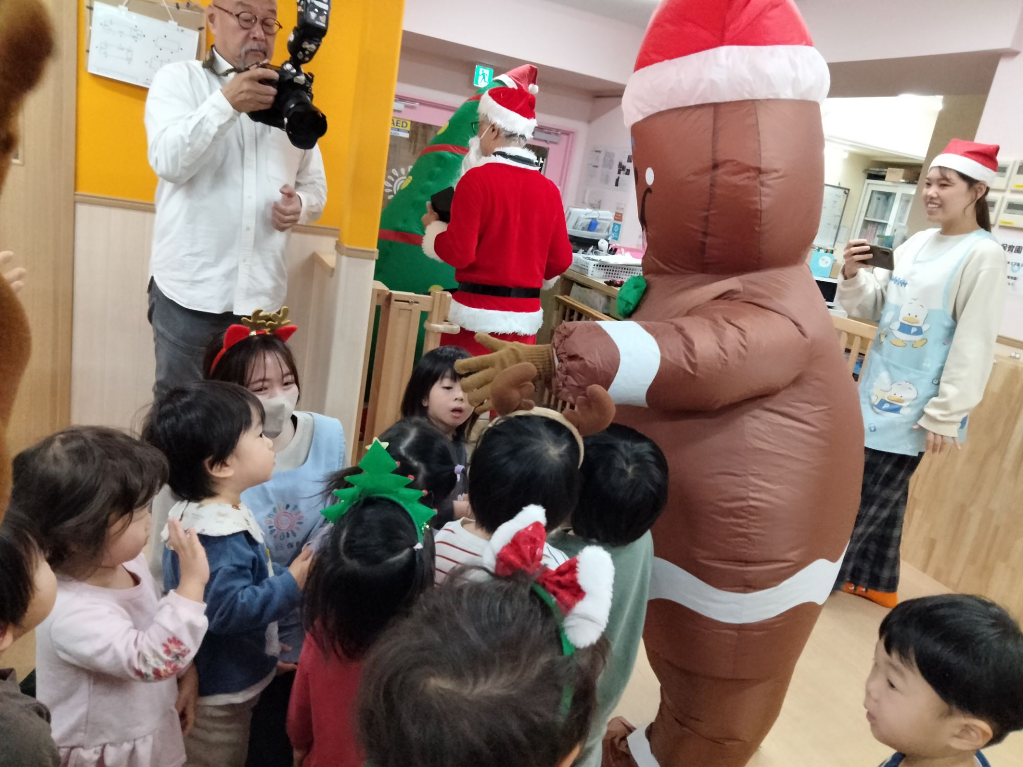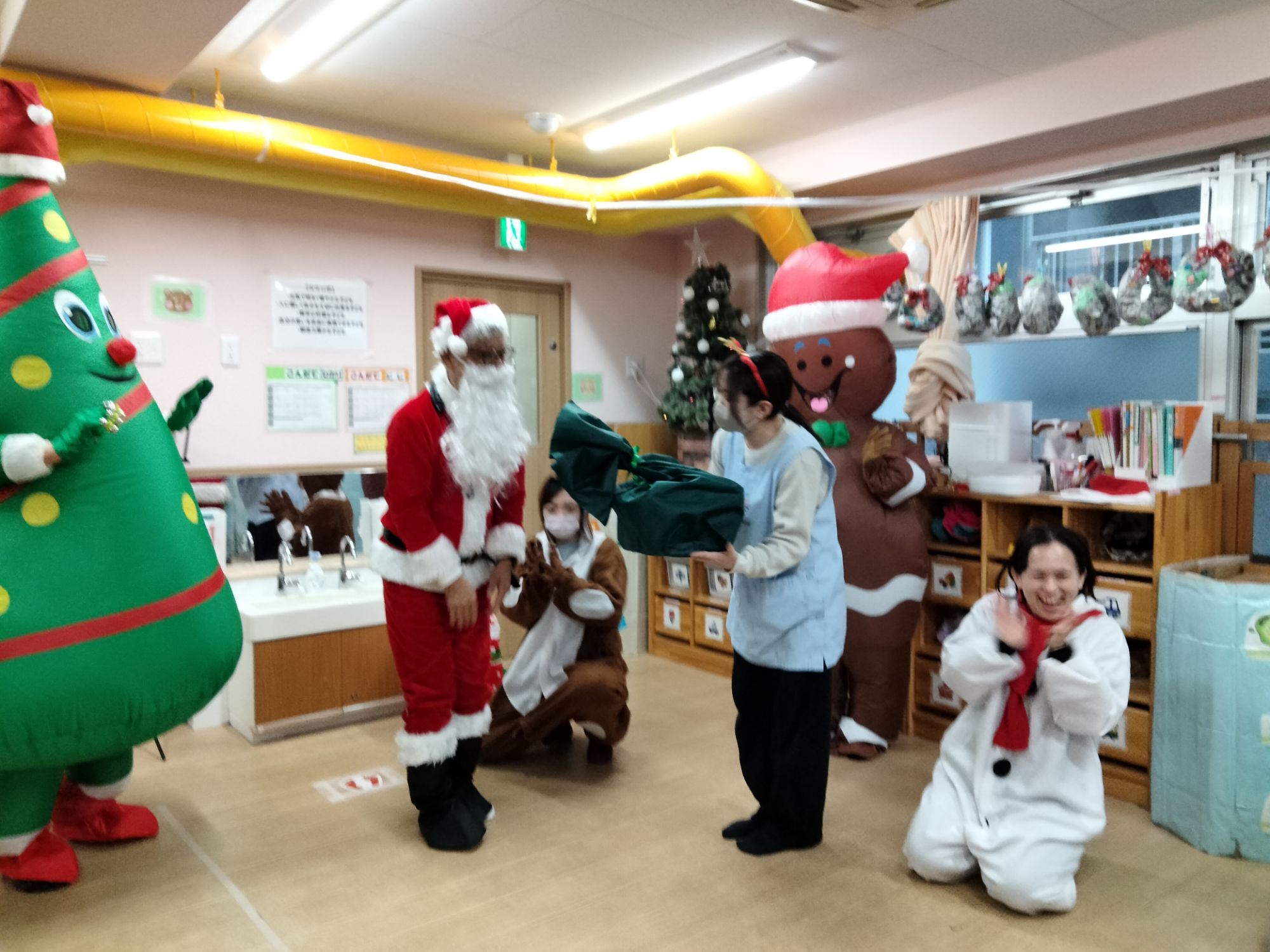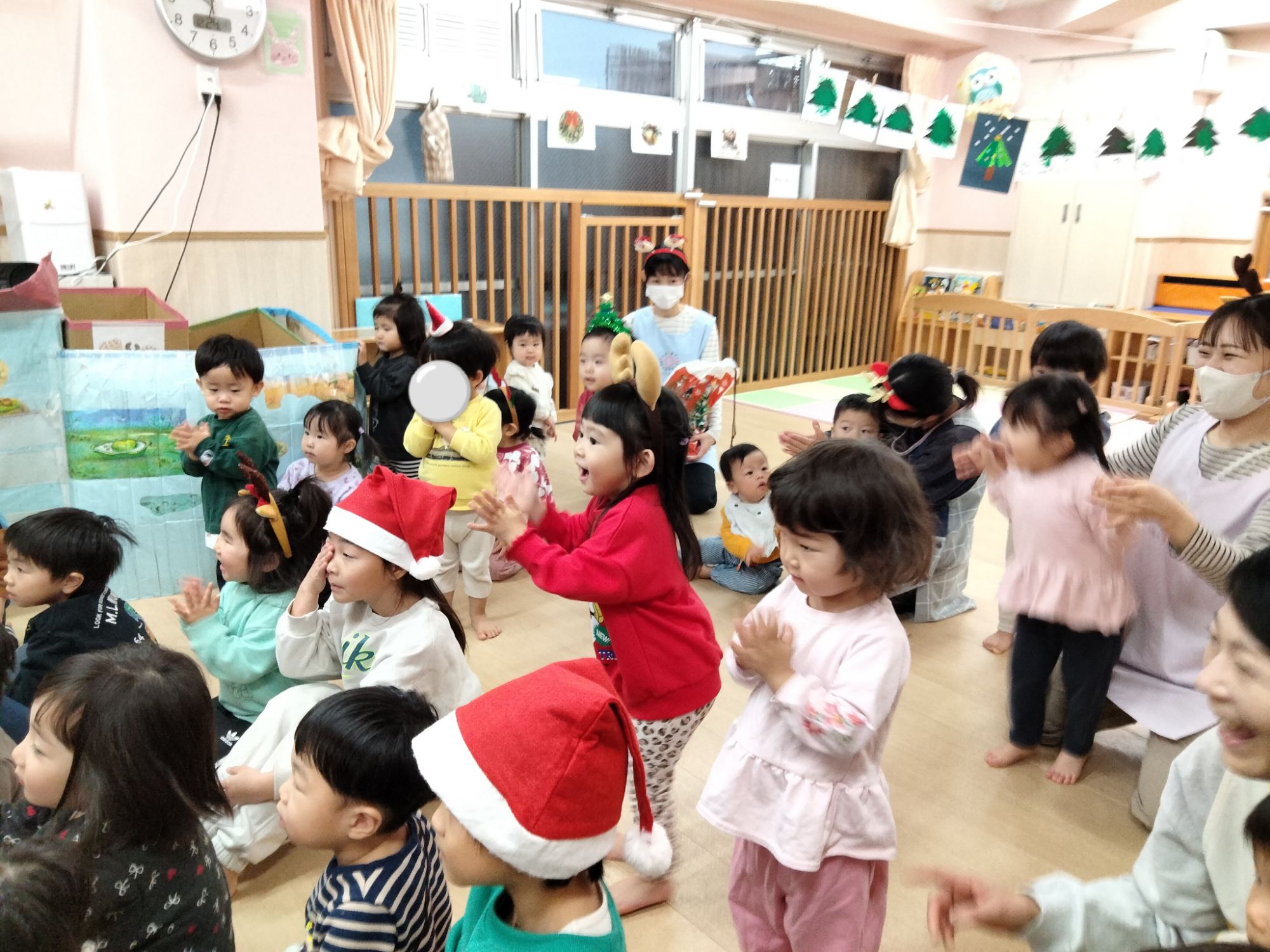 サンタさんやジンジャーマン、ツリーマンが来てくれた保育園のクリスマス会🎶