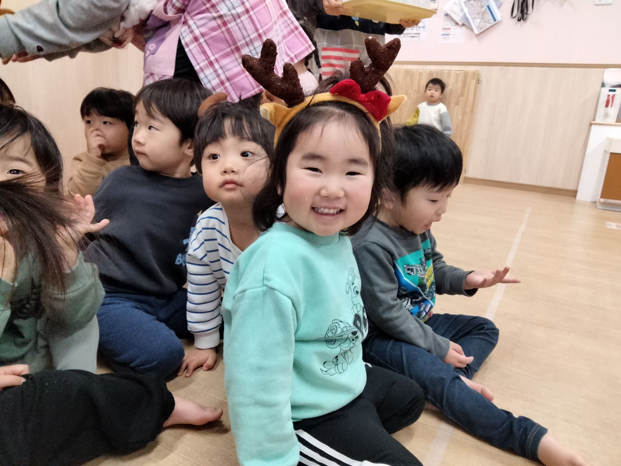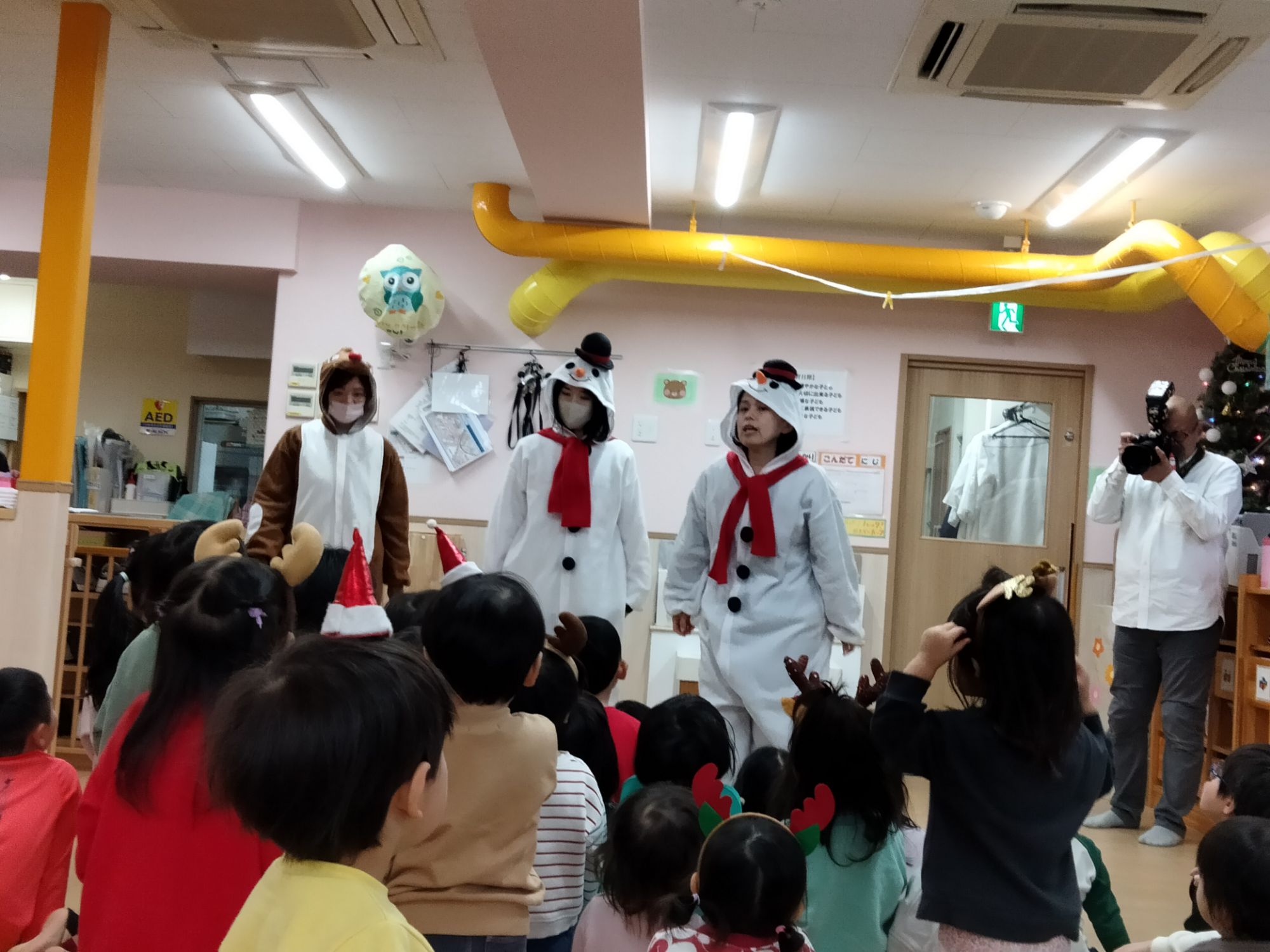 いつも遊んでる先生達がスノーマンとトナカイさんになってる!!✨️
