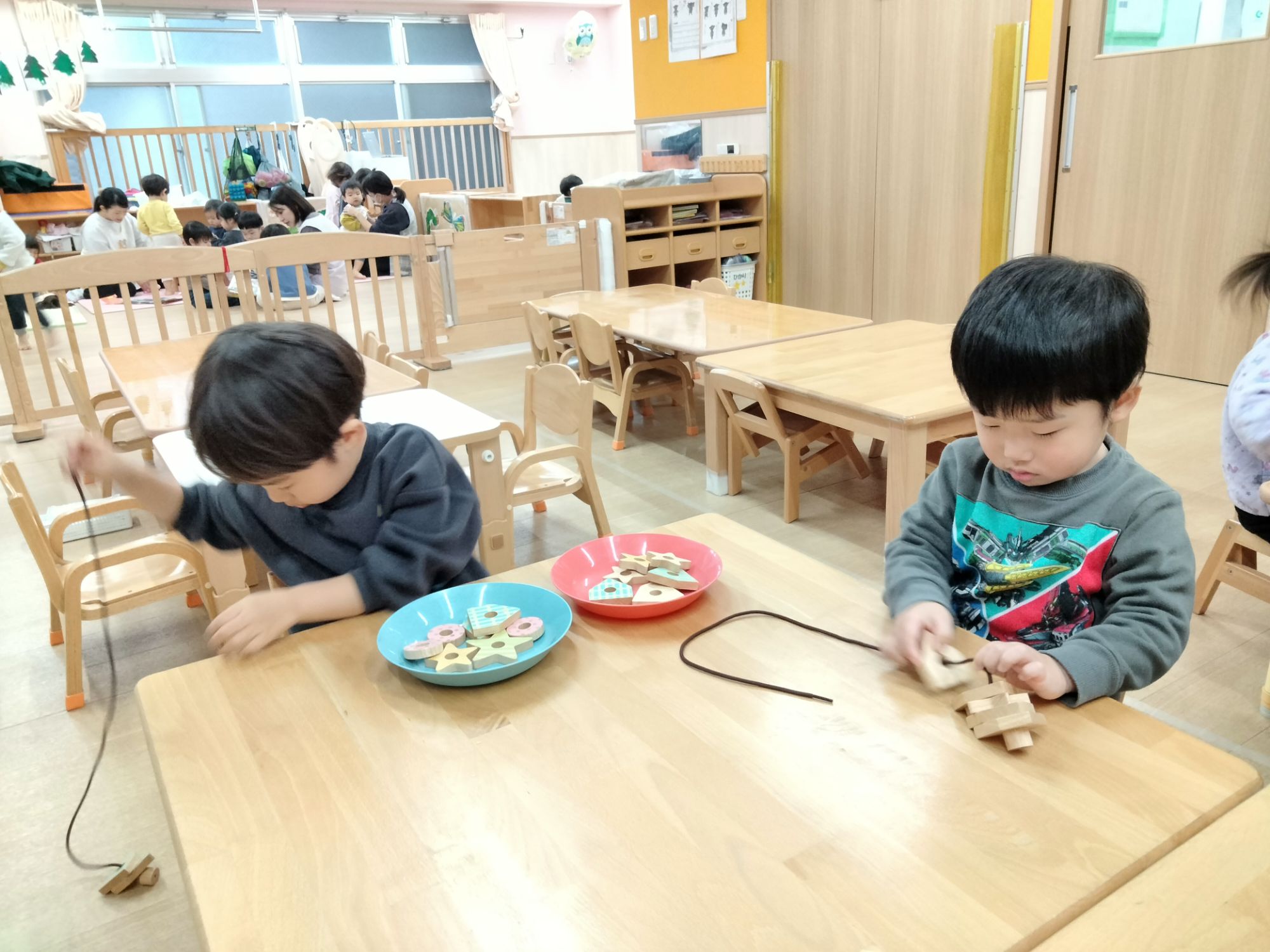 真剣にひも通しをしていました👀✨️