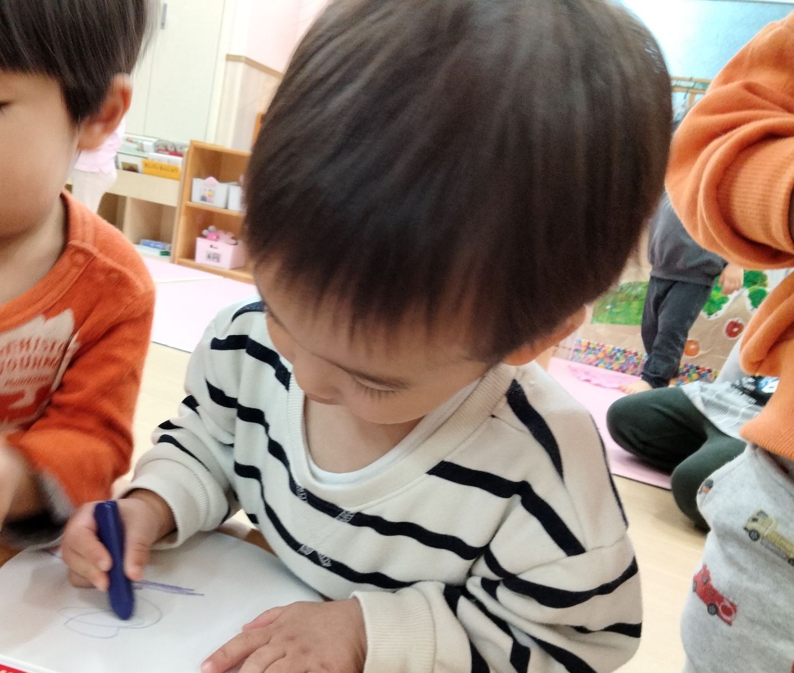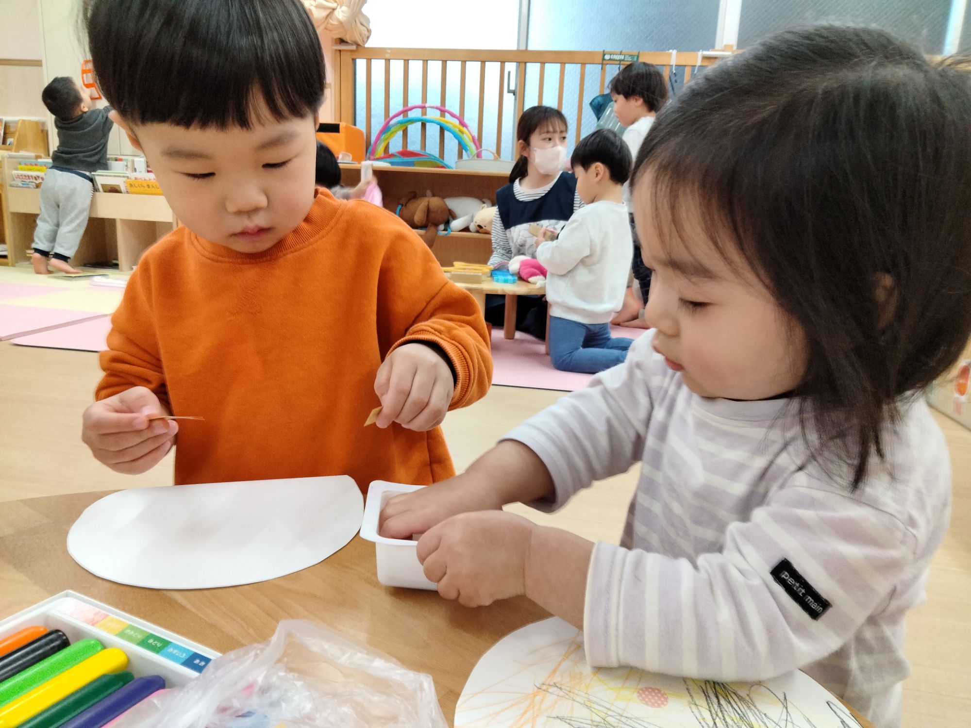 指先を使った活動…指先を互い違いに動かすコマ回し💦子ども達にとっては、すごく難しい😓自然と集中…指先をどうやって動かしたら良いか…考えることで脳の発達が促されます🤗