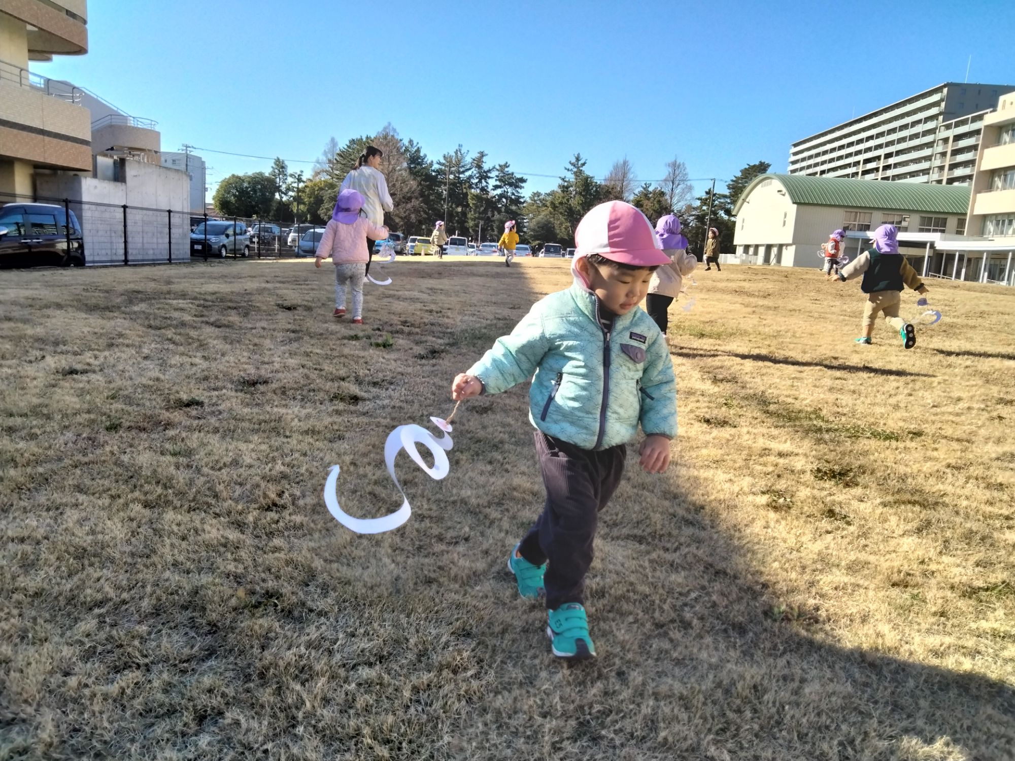 ニコニコで凧あげ遊びを楽しんでいた子ども達🥰