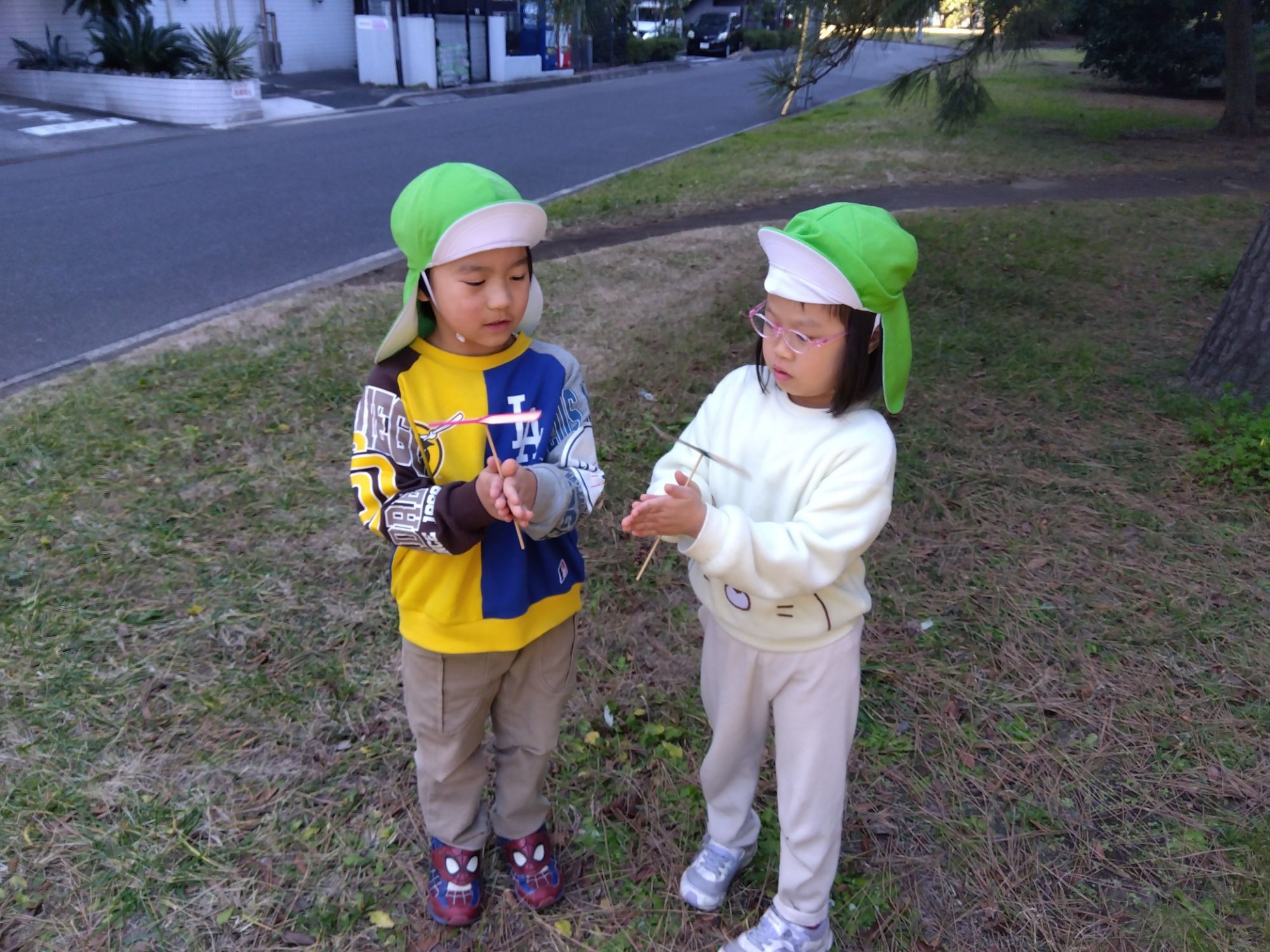 『竹とんぼ』やったことある!と言っていたお友達が進んでやり方を教えてあげています✨️