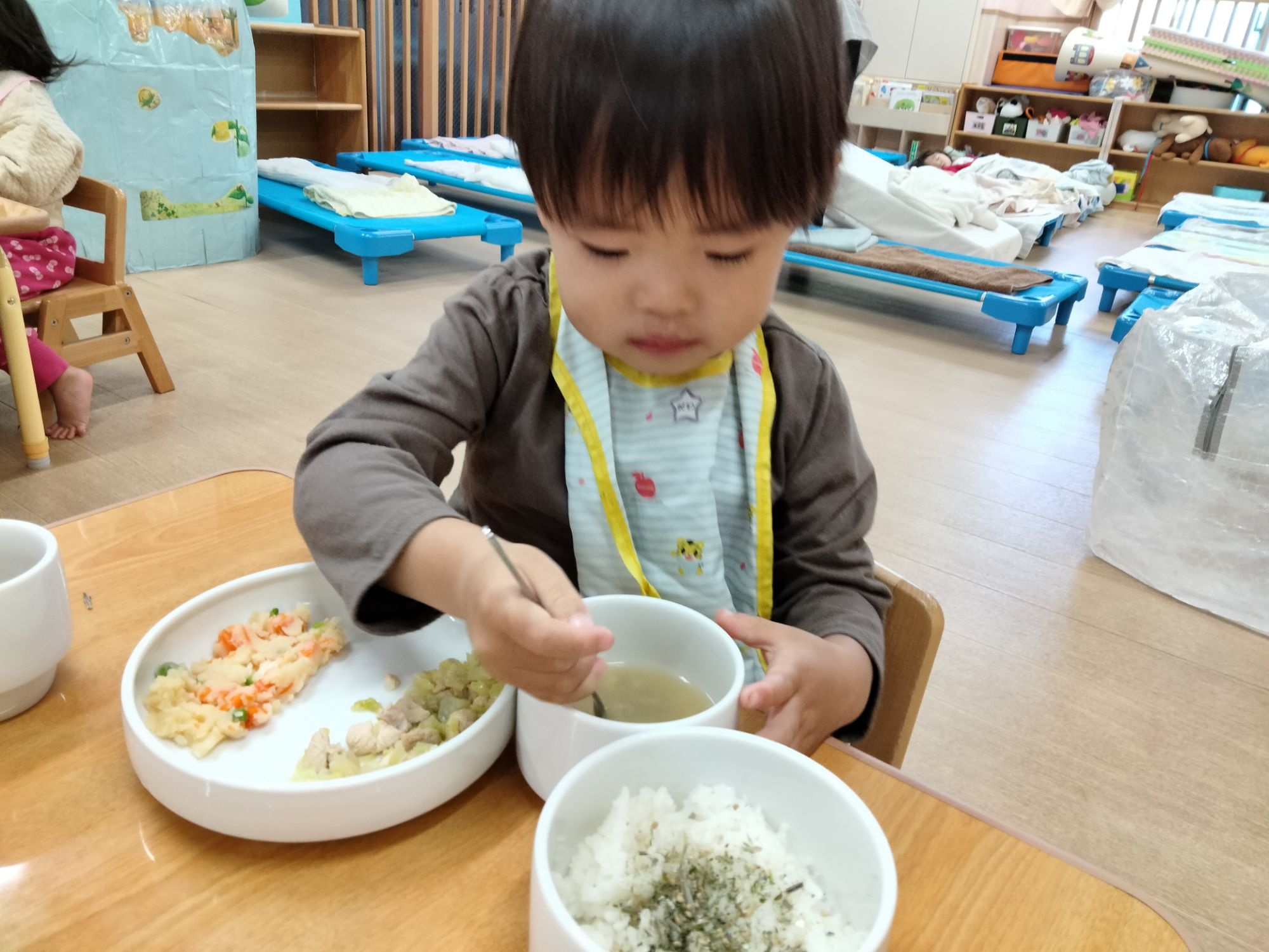 少しすると自分からスプーンを持って…