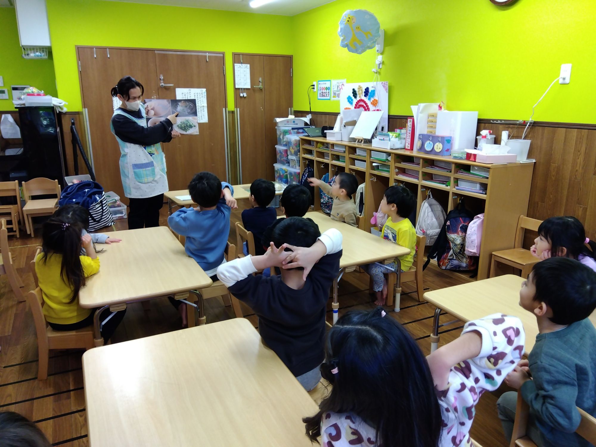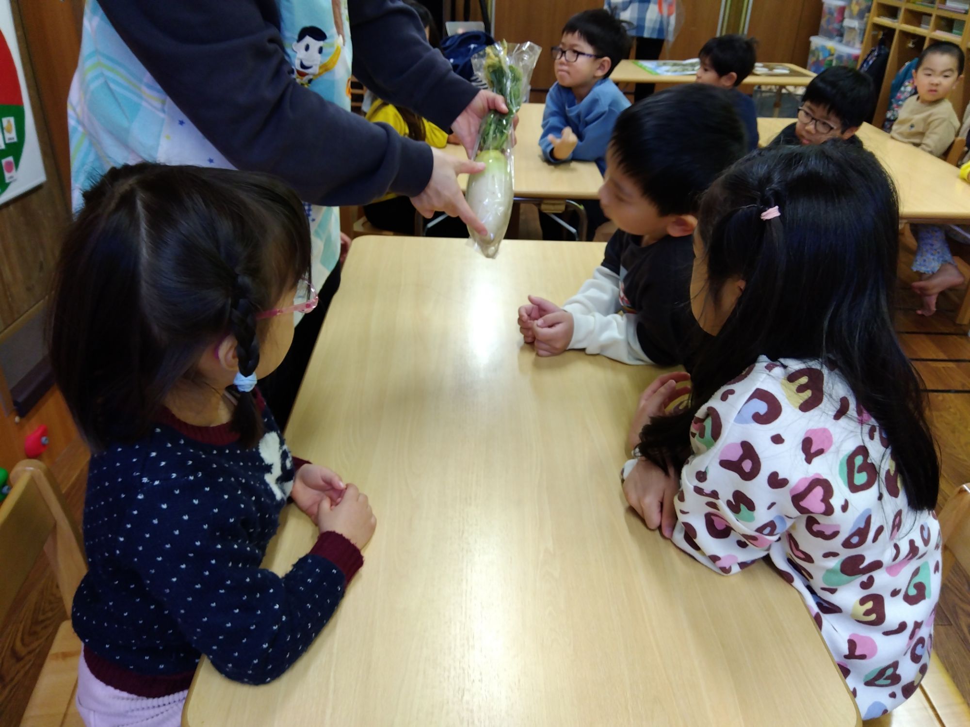 畑にキツネが遊びにきたこと🦊寒くなると大根は甘くなってもっと美味しくなること!夏になったら種をまく🌱など、新しい学びに「え〰️」「へー」という子どもたちの反応…が見られました。お話をよく聞いる証拠ですね!