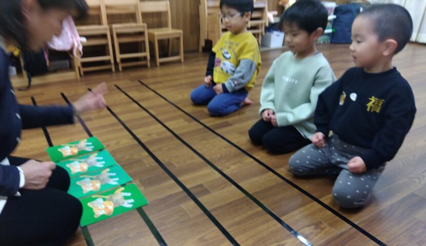 講師の引く音は『りす?いぬ?ぞう?』と聞き分けて分かったらカードをタッチ!
