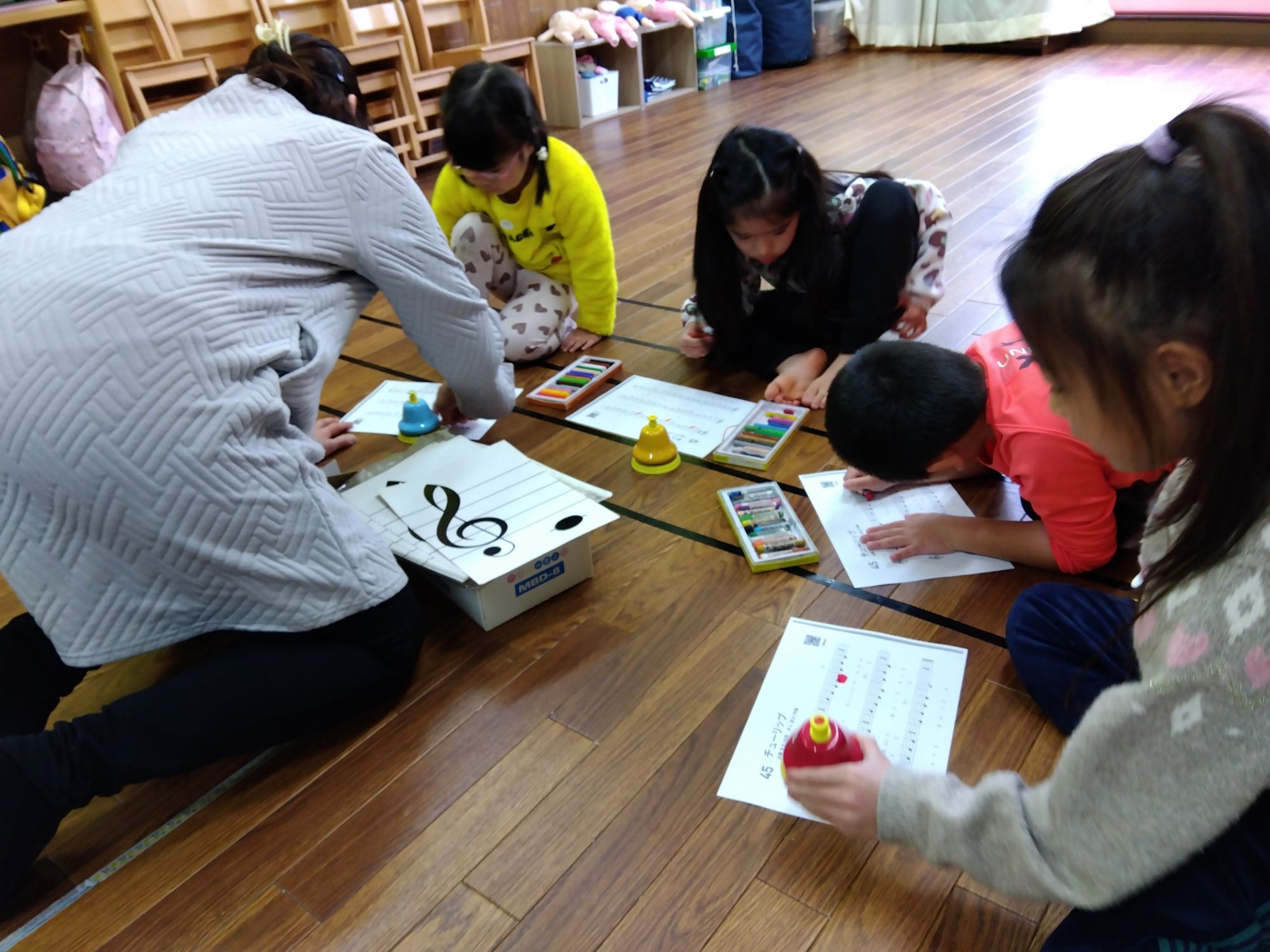 ハンドベルです。自分の音、タイミングなど難しいことが多いけれど…みんなで合うとすてきな音楽が出来上がり、みんなニコニコです😆