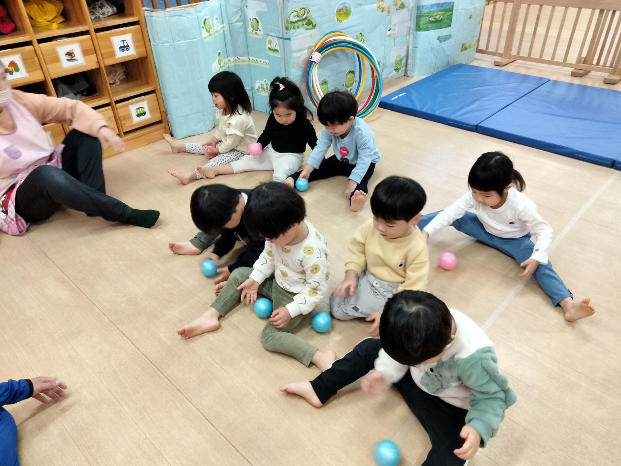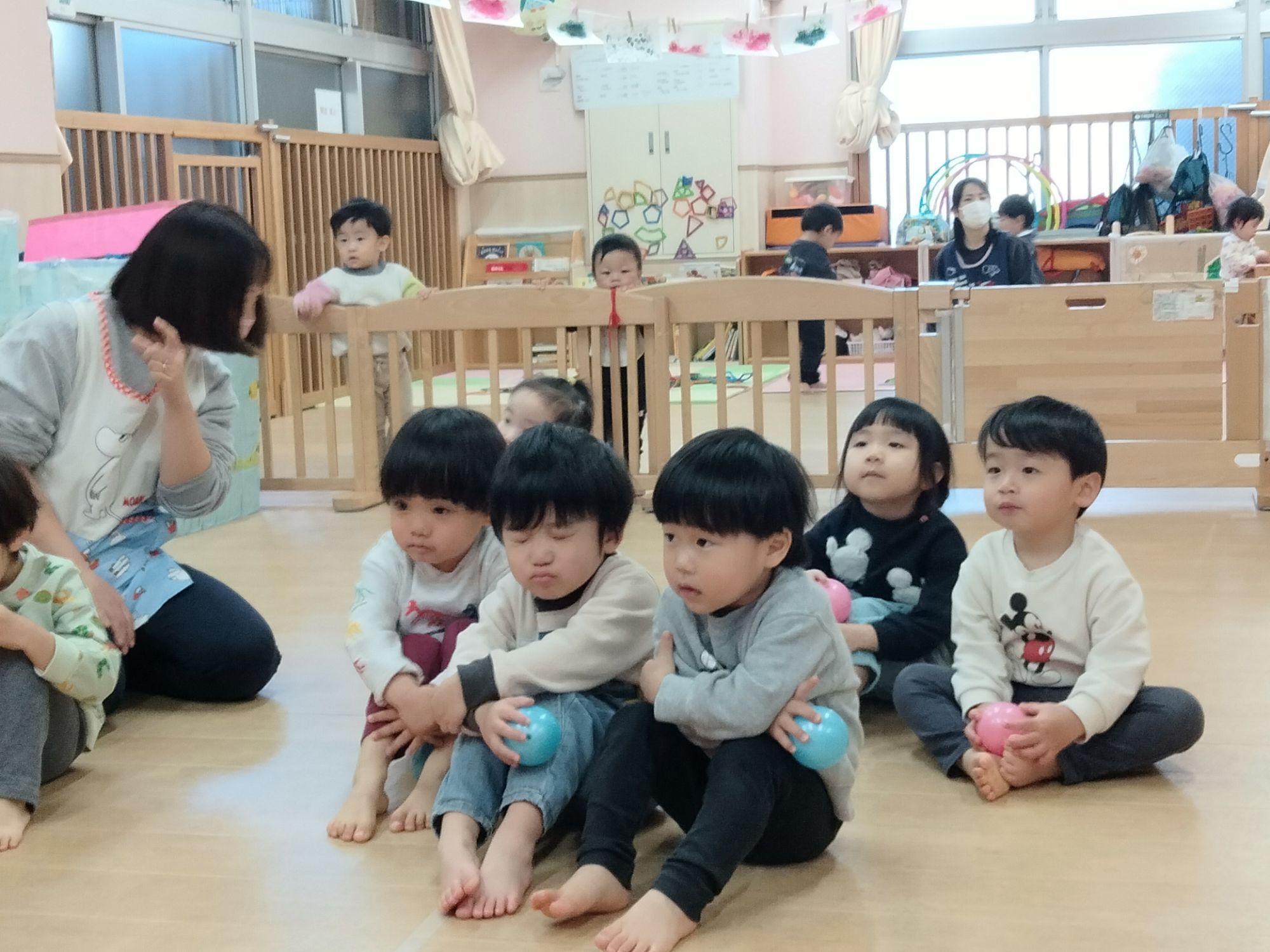 まずはボールを一人ひとつずつ受け取り優しくコロコロ🌀