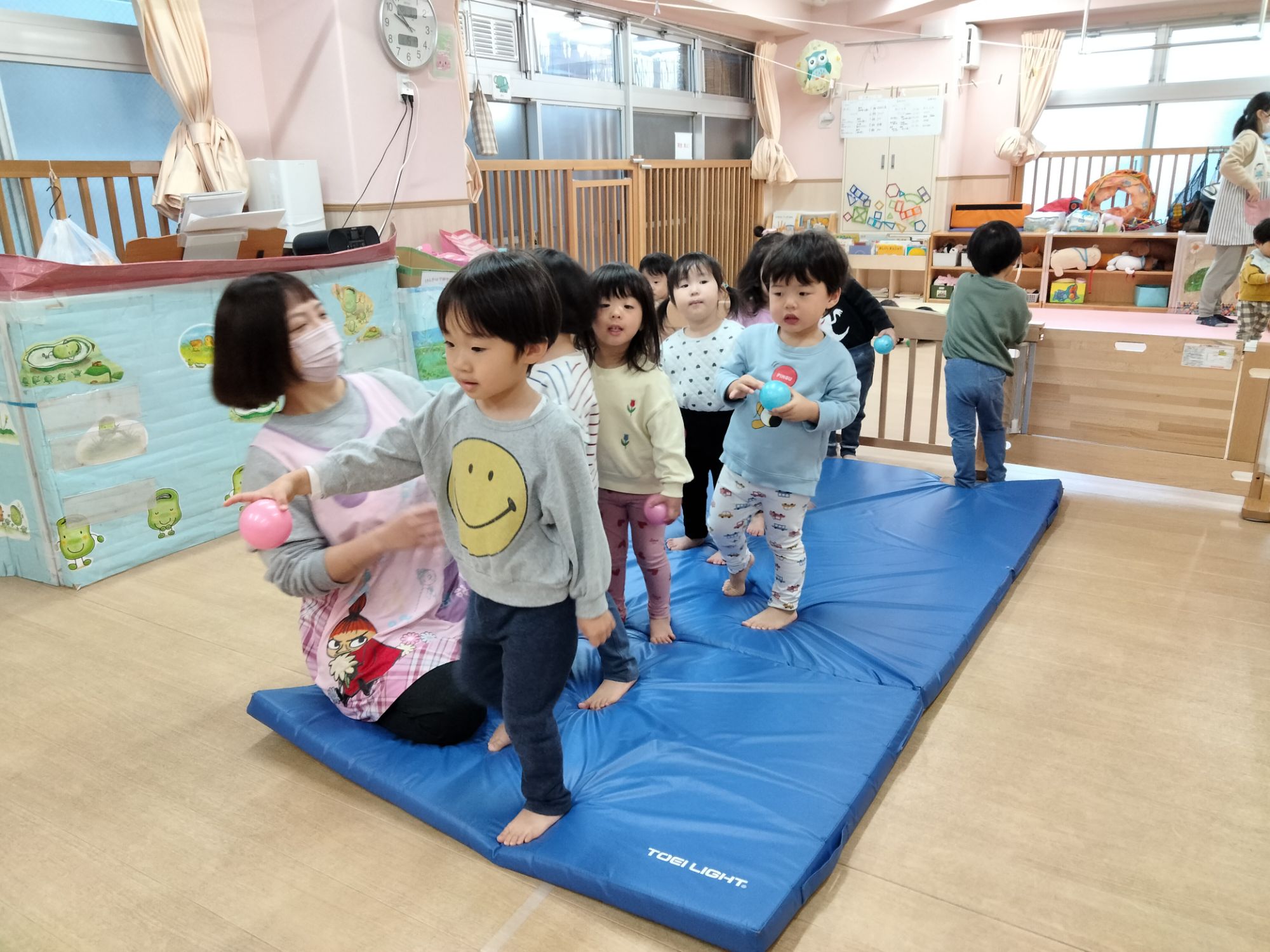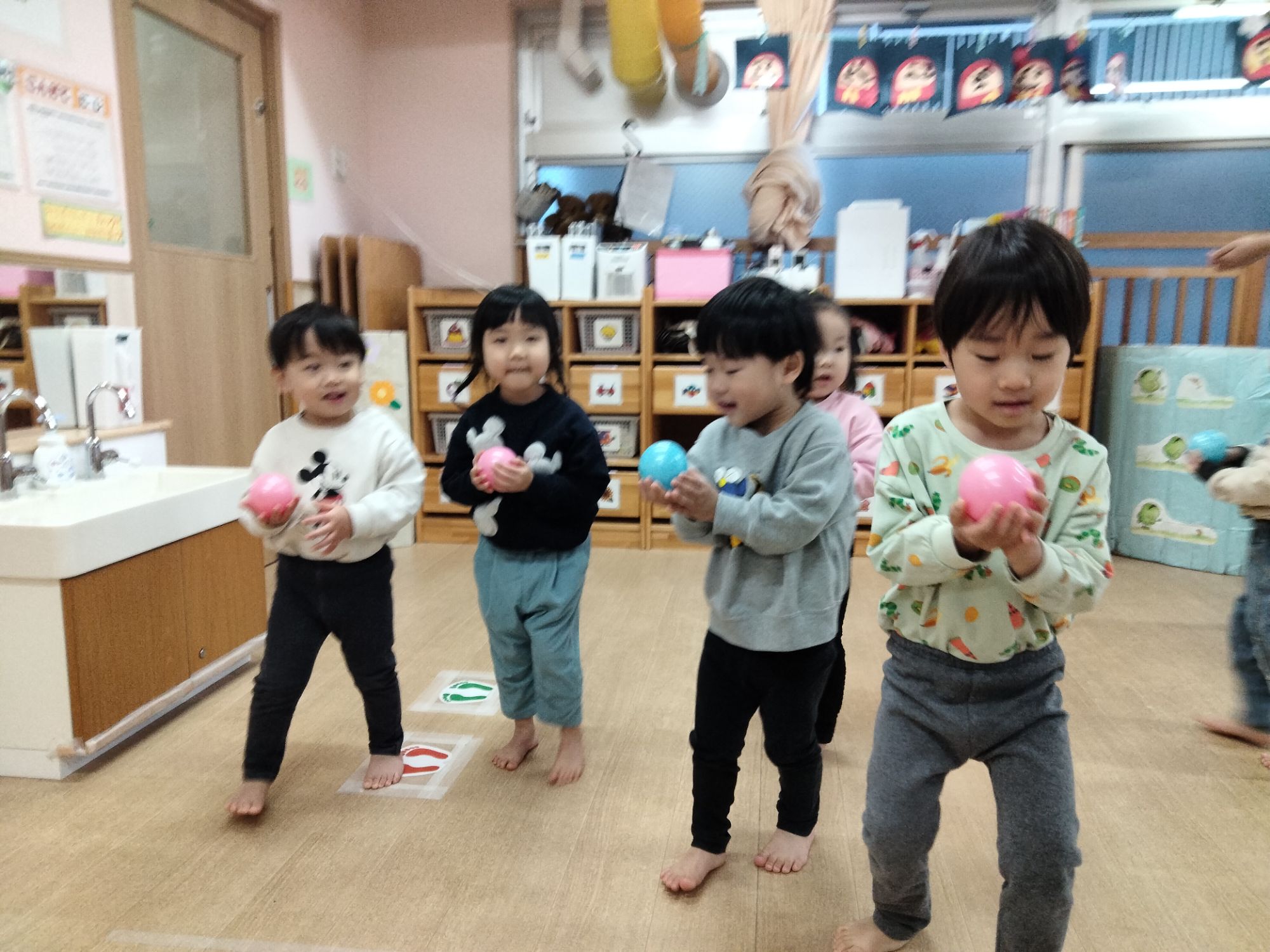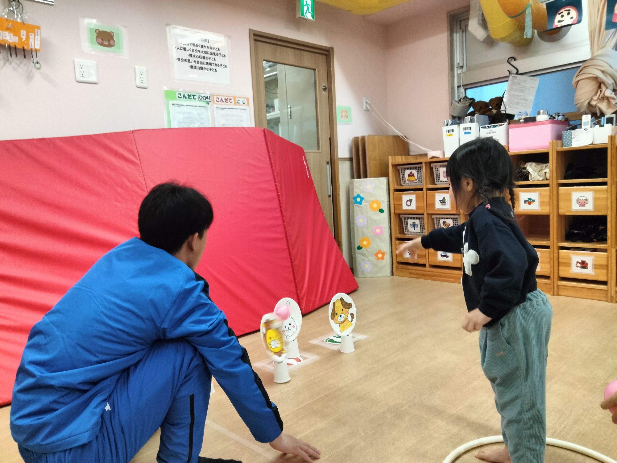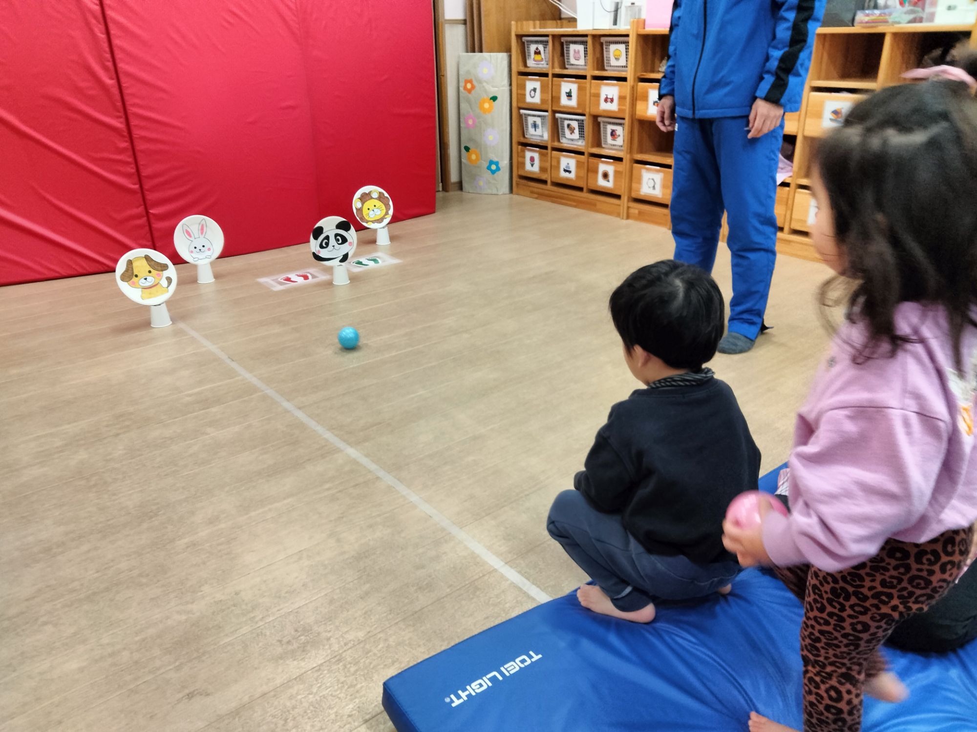 狙った動物に当てるのはなかなか難しいですが何回も挑戦し、1月最後の体操では命中率がぐんと上がっていました👍🏻