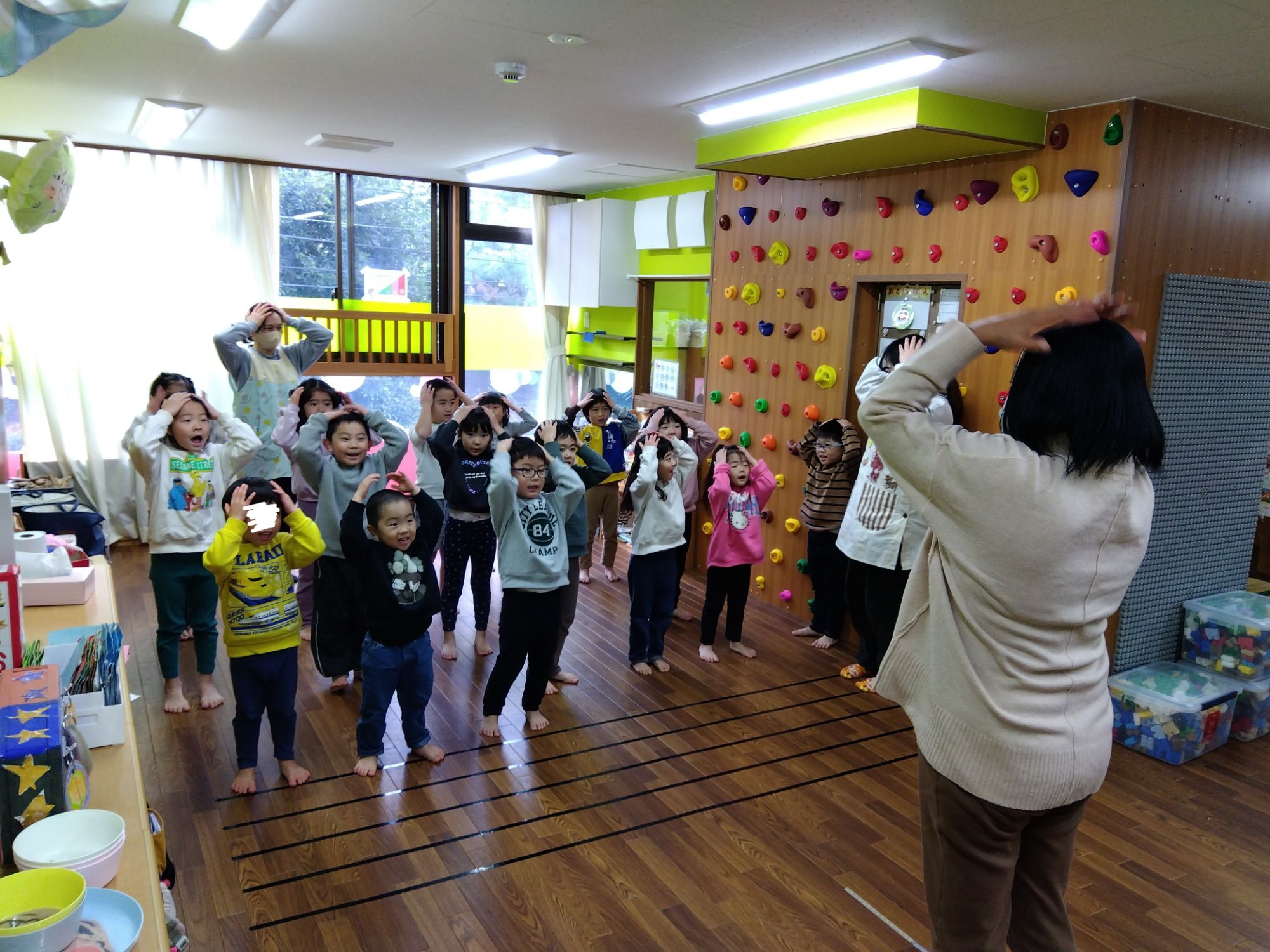 みんなの知っている♪Head、shoulder、knees&toes♬大きな声で歌いながら、しっかりアクションしています👍🏻