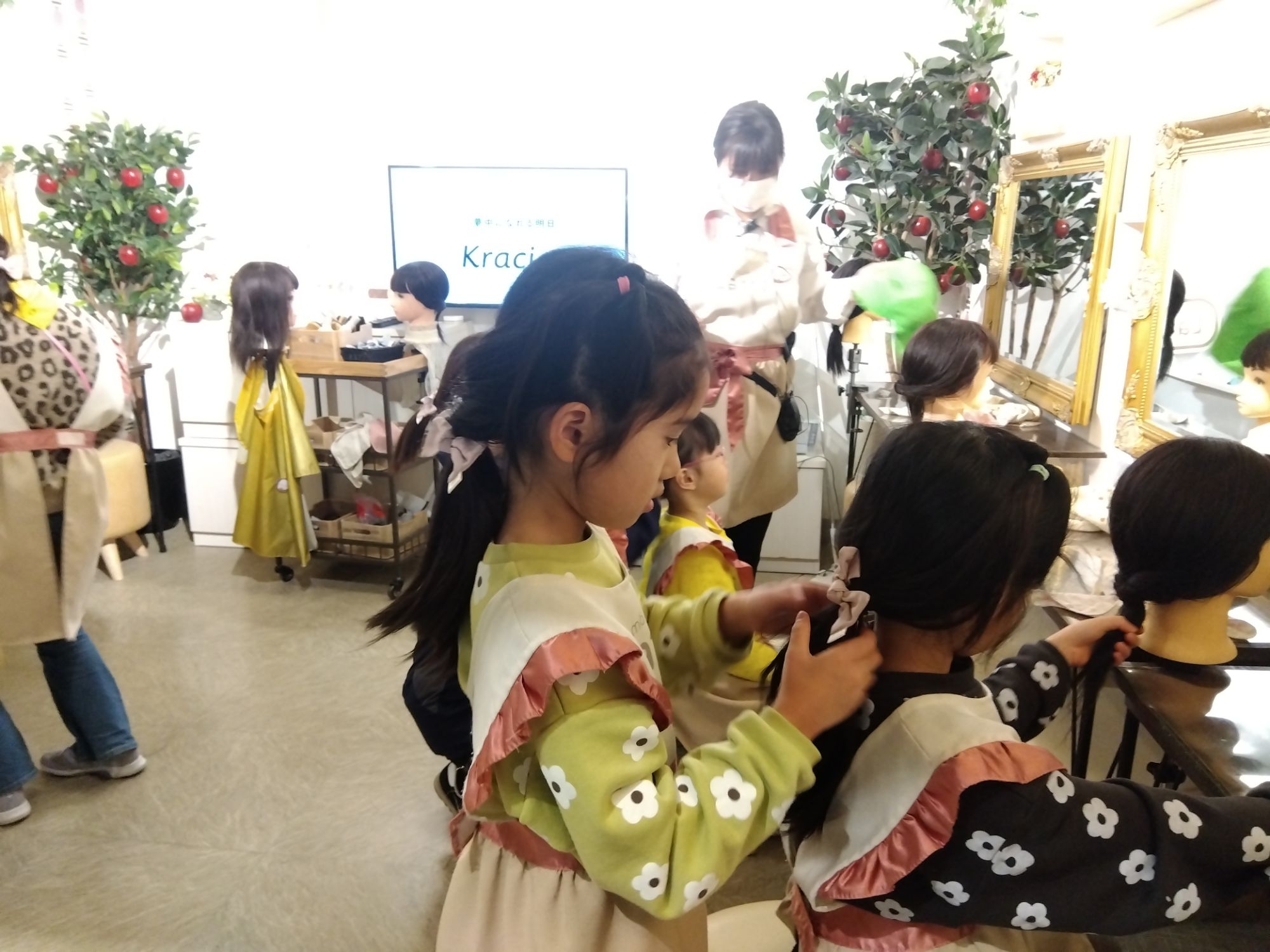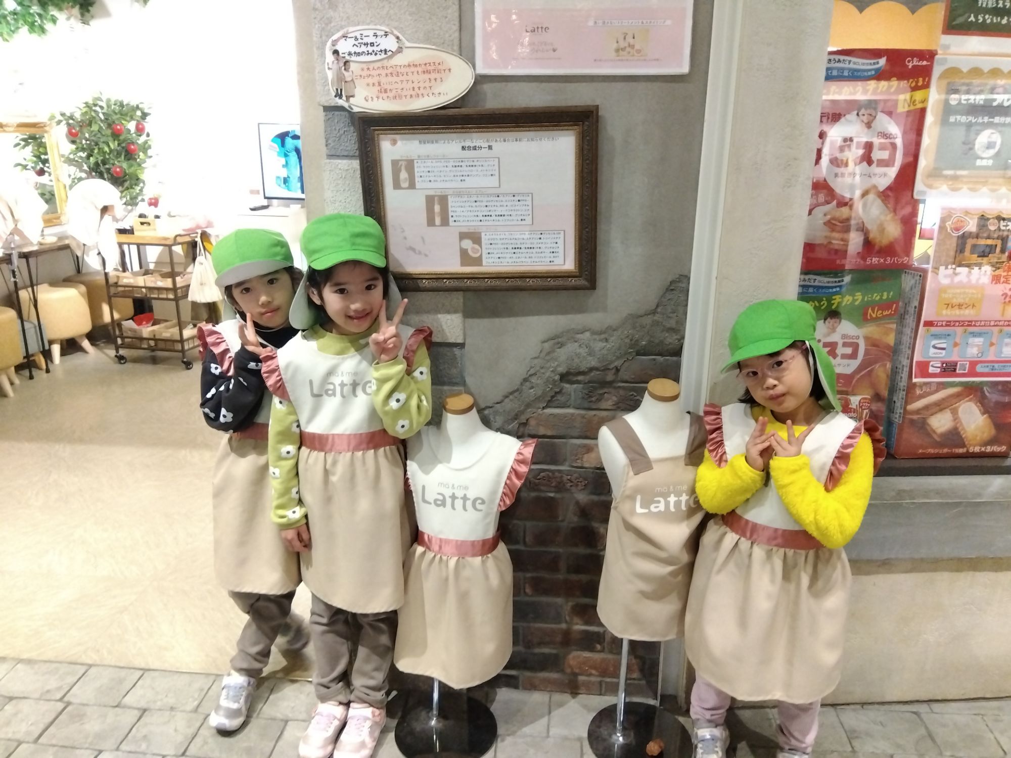 それから二人組になってお客さんと店員さんでお互いに可愛いリボン🎀をつけてお揃いリボンのヘアスタイルに✨️