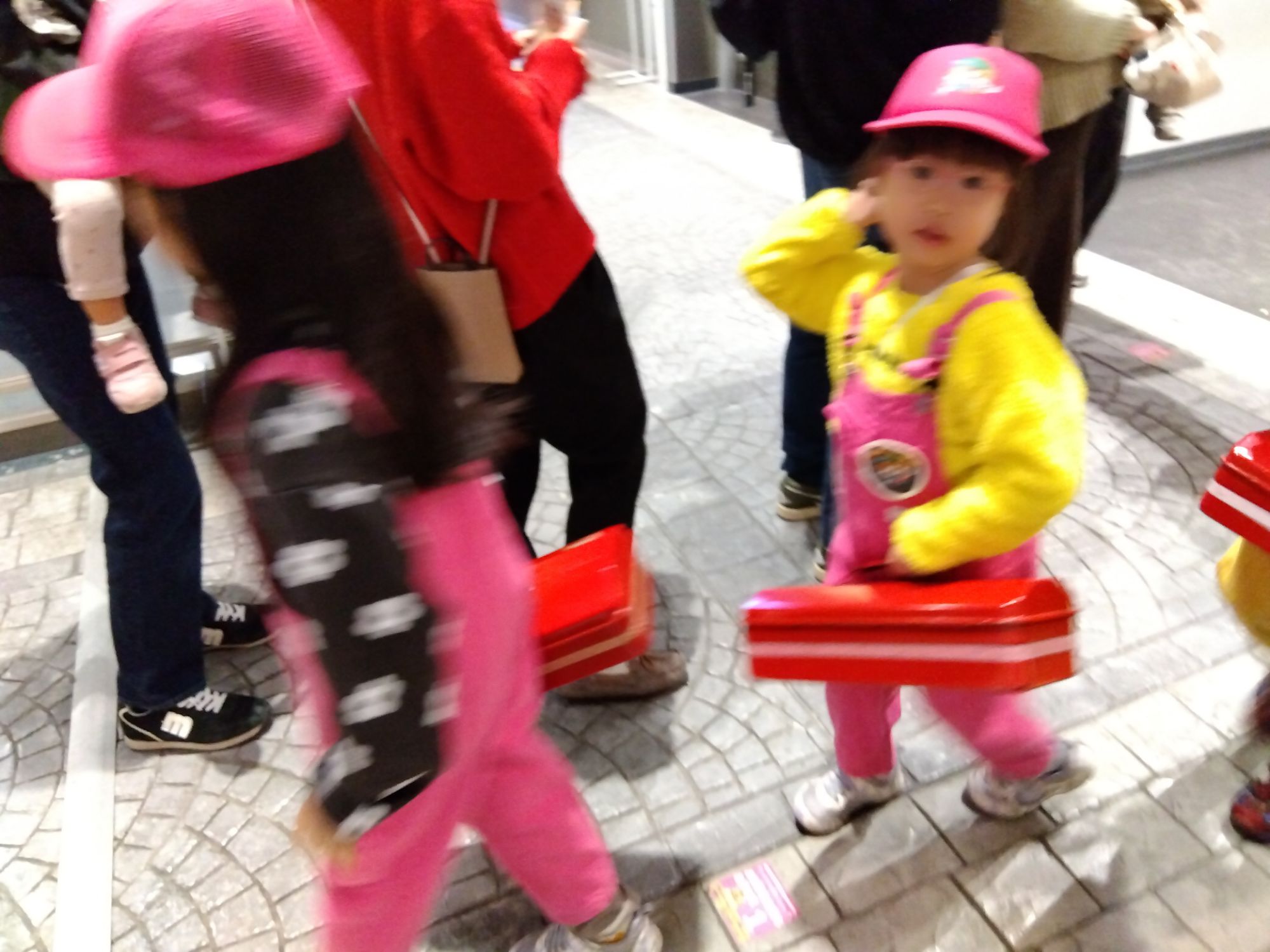 さぁ♪メンテナンスするための道具をもって点検する車の所へ出発!