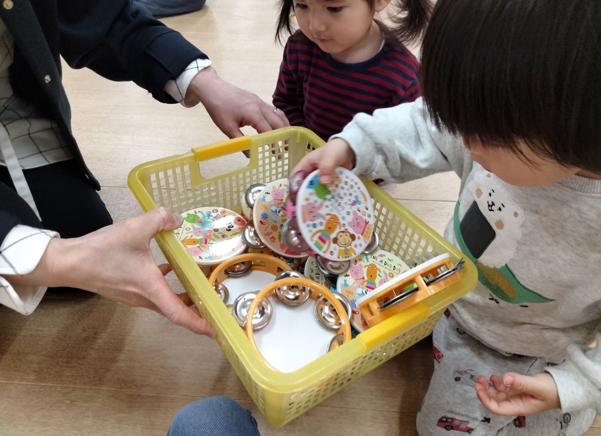 自分の意思で好きな色のタンバリンを選ぶ…自己決定!の力を育みます🤗