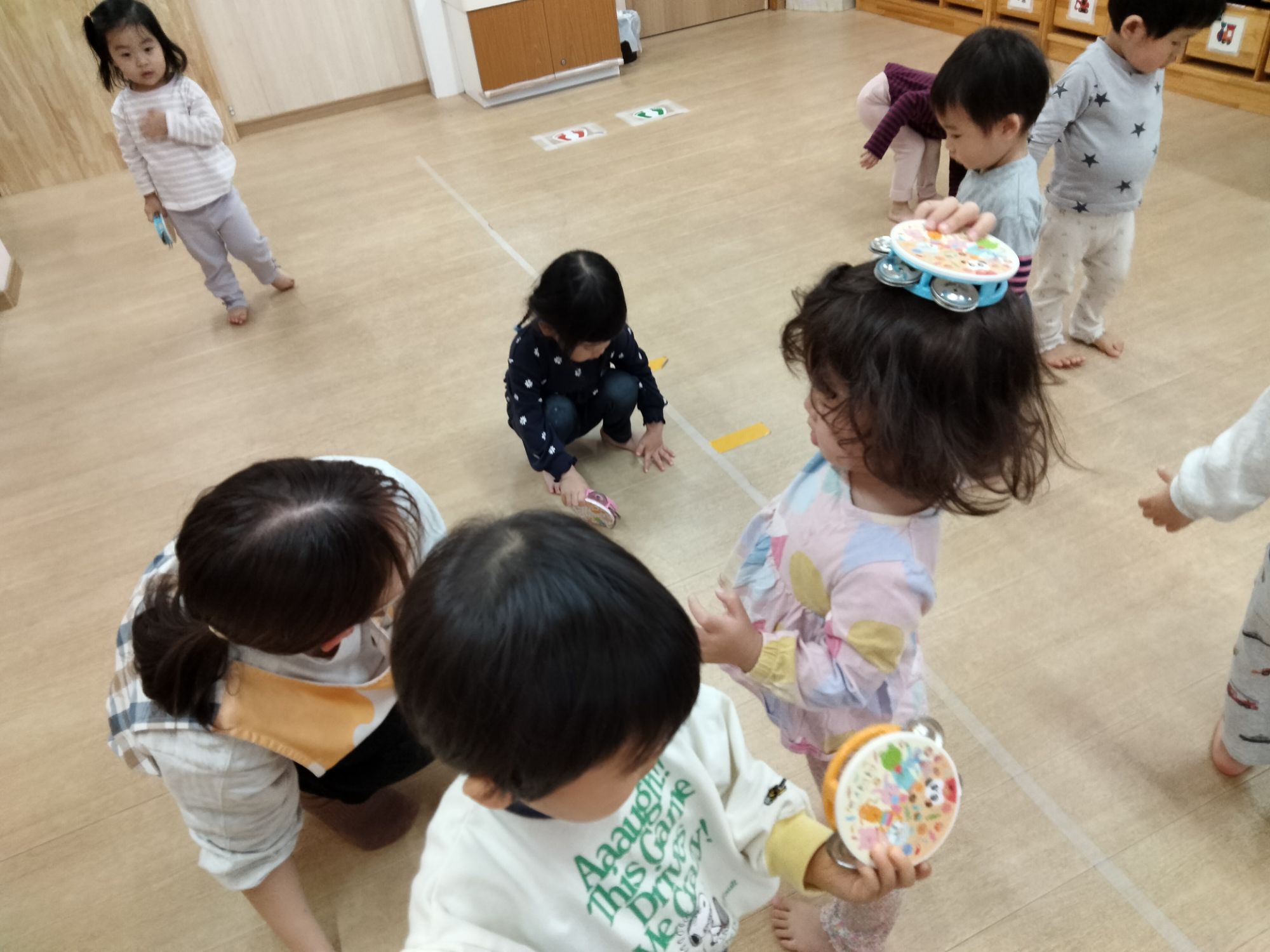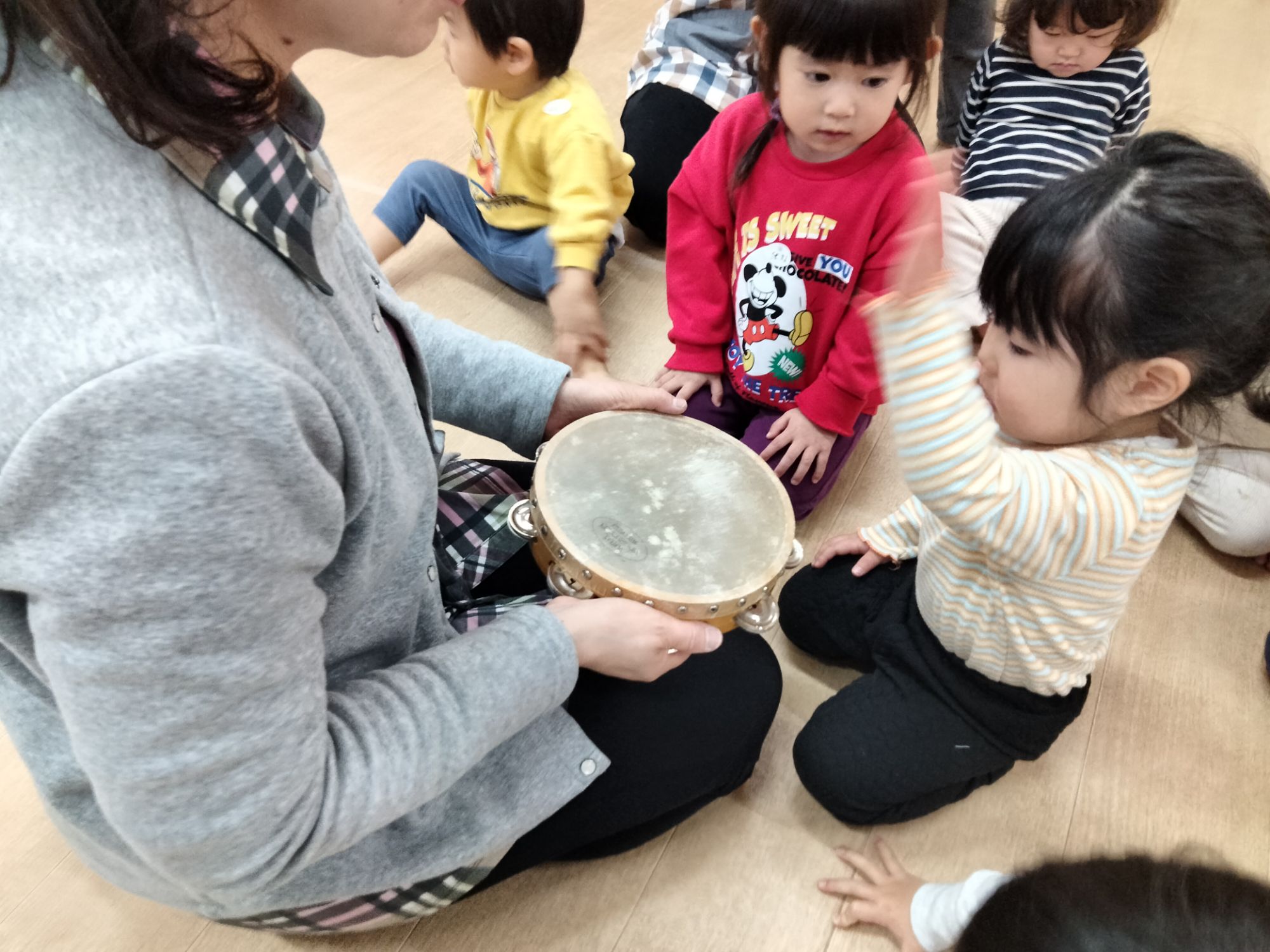 大きなタンバリンも叩いてみたよ〜👏