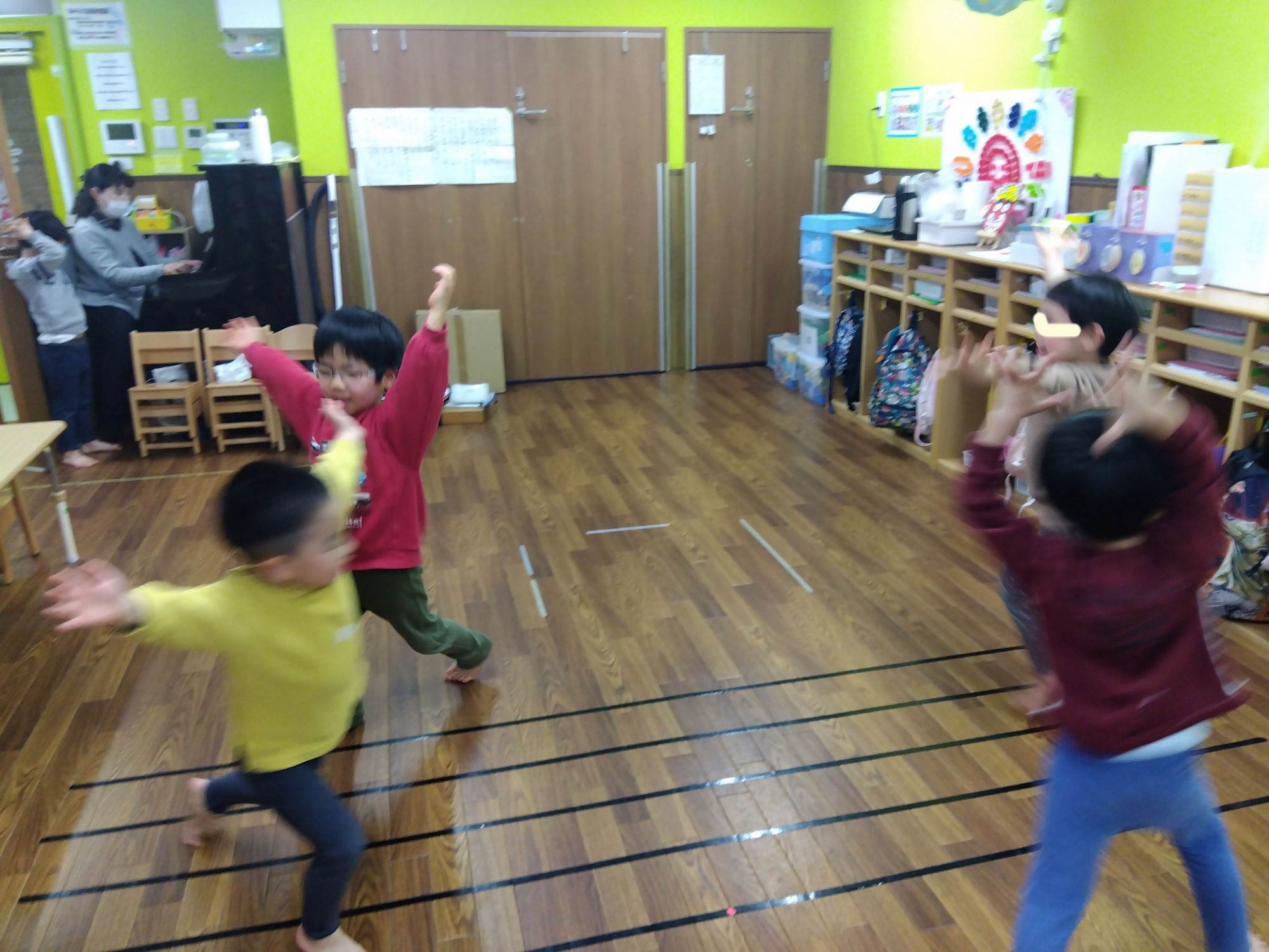 リトミックは次年度を見据えて、少しづつLEVEL UP 「きらぼしさんがやっていた〜」「きらぼしさんみたい!!」と少しだけお兄さんになった気分で楽しみました😀