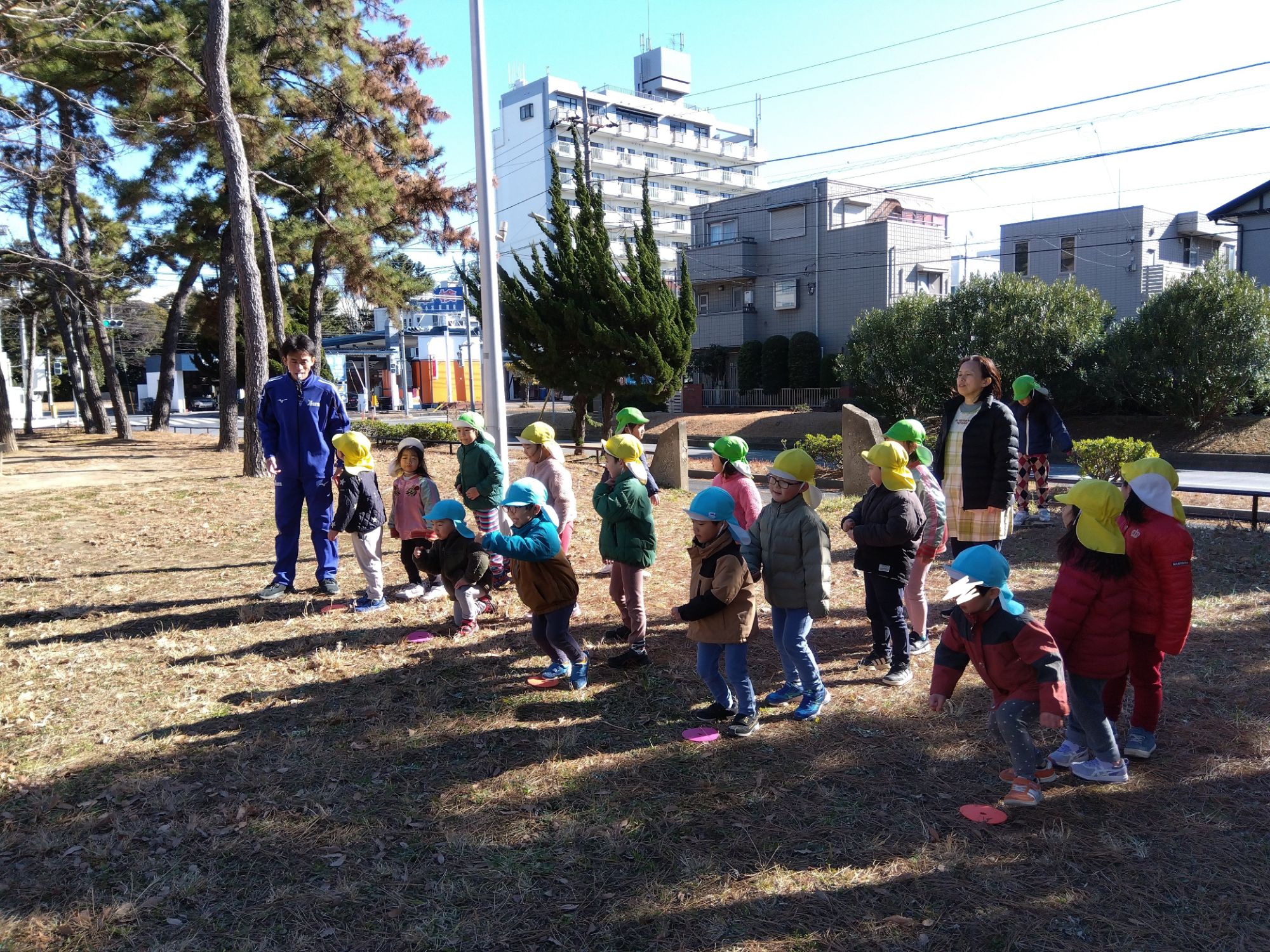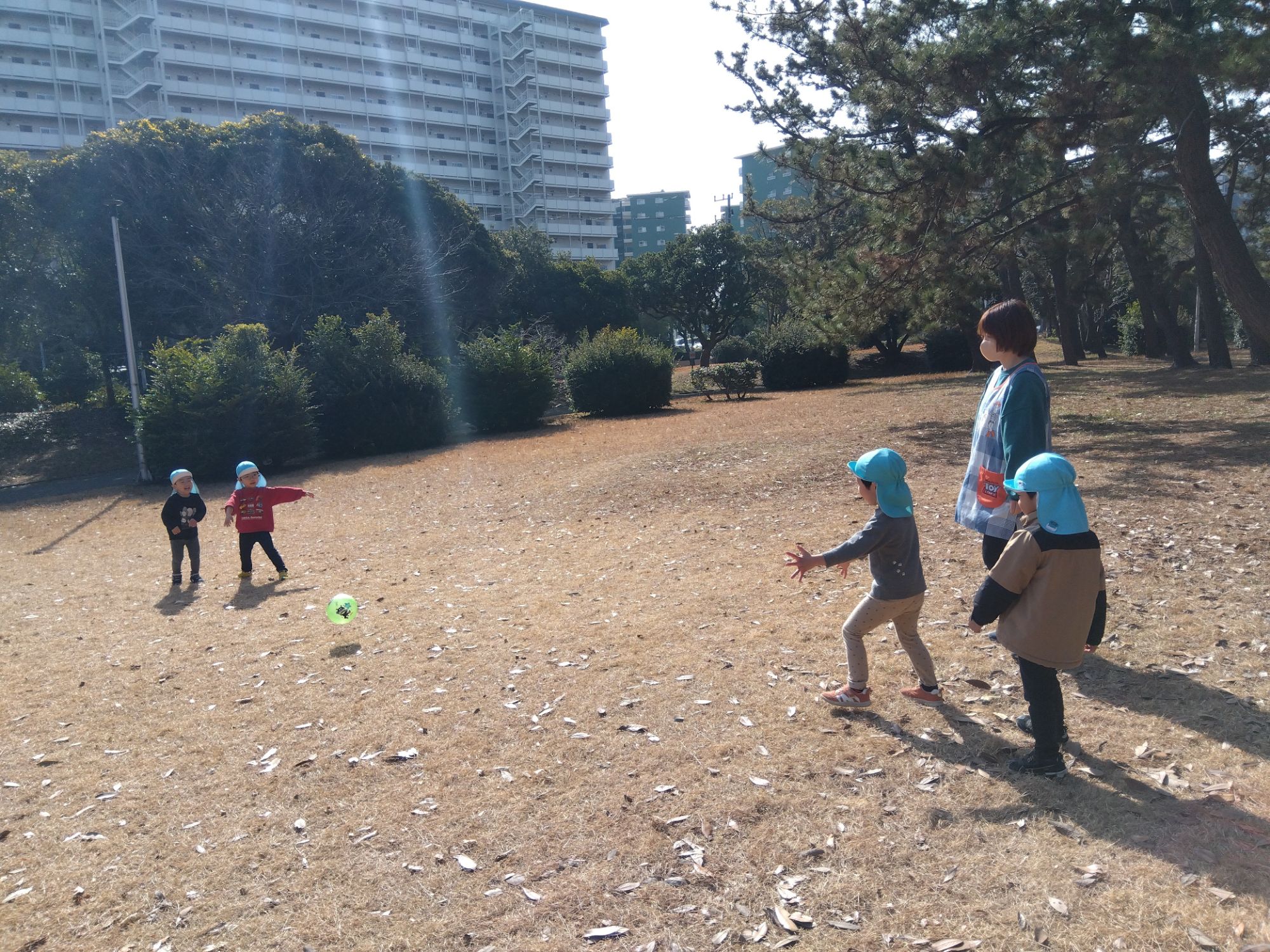 お外で思い切り投げよう!!ということで、公園での体操です✨