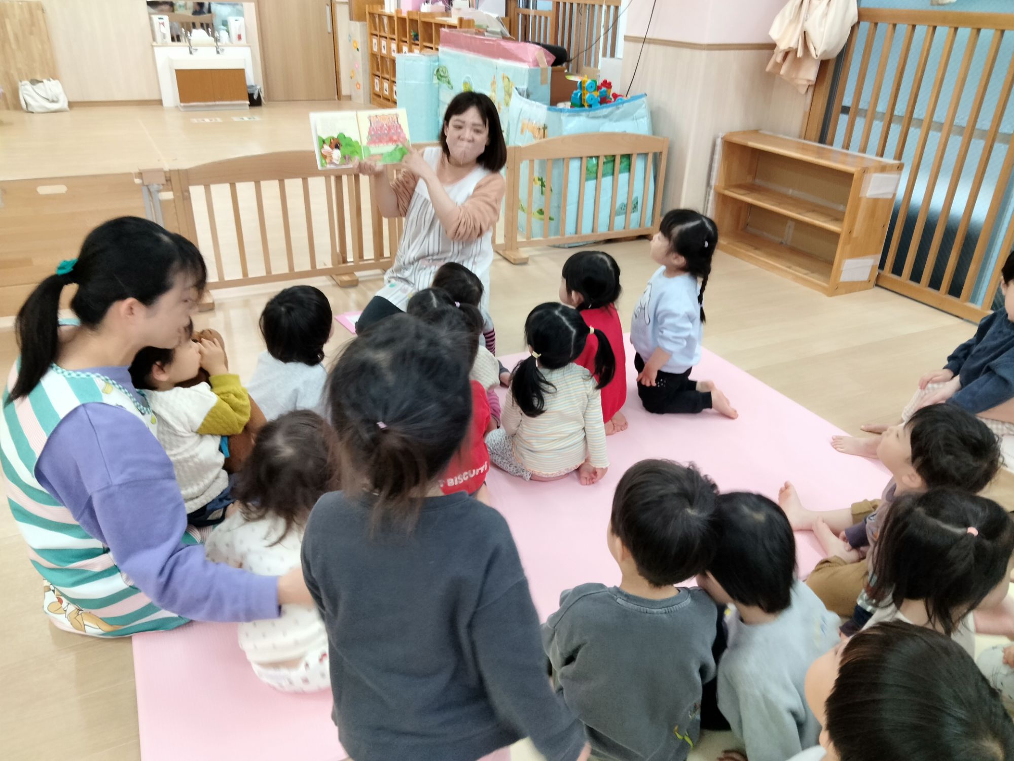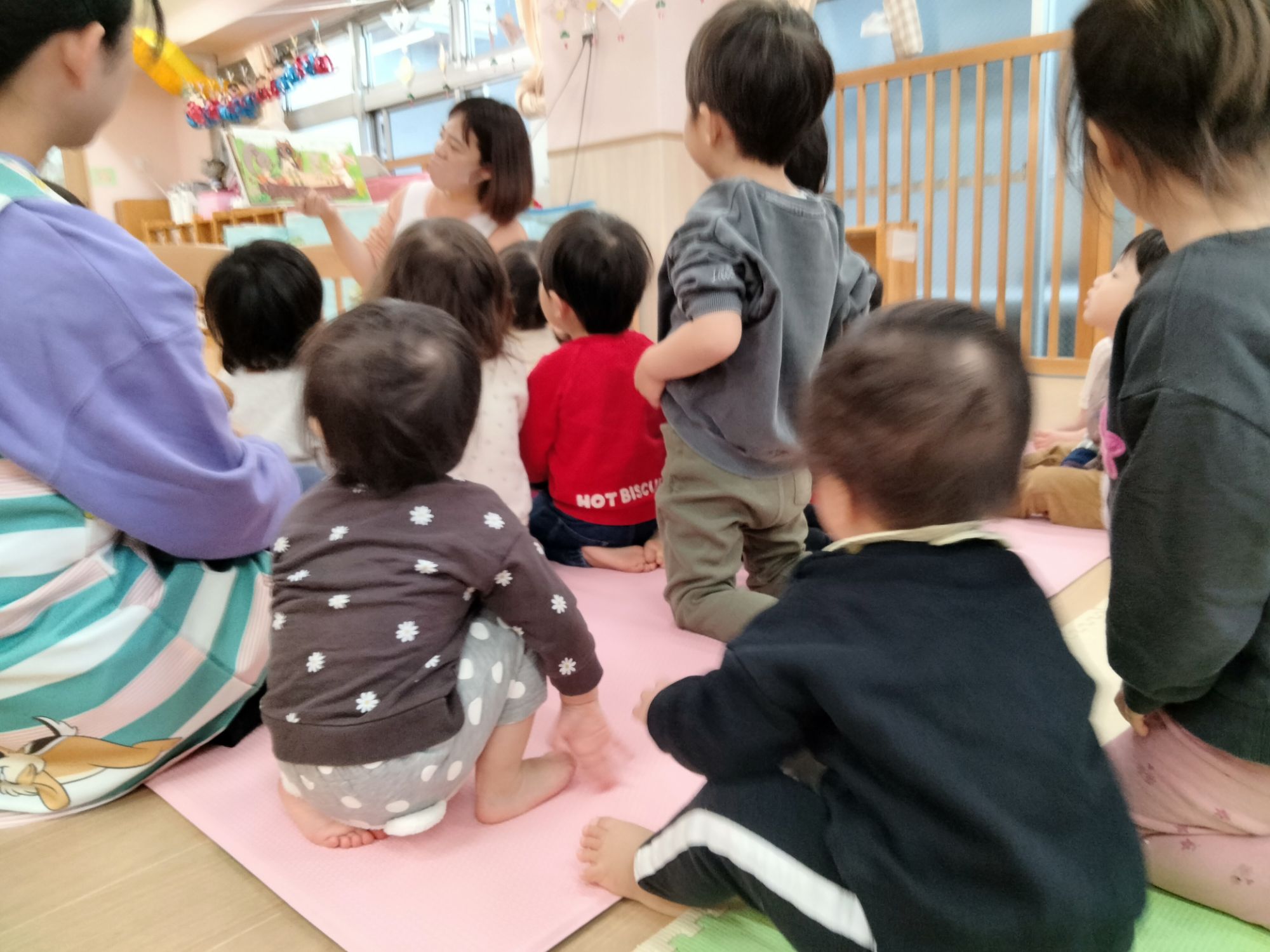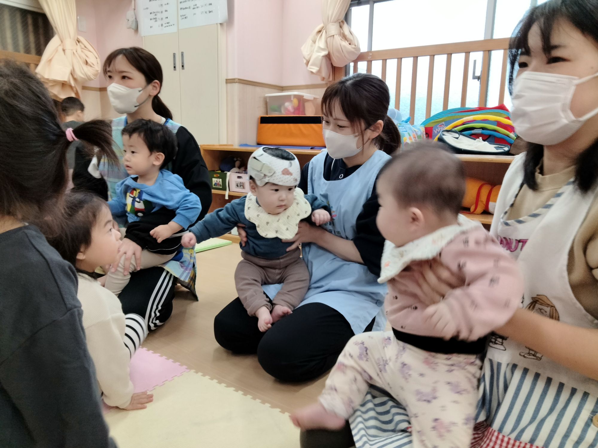 おひさま組さんも、保育者に抱っこされて、一緒に参加しました🌱
