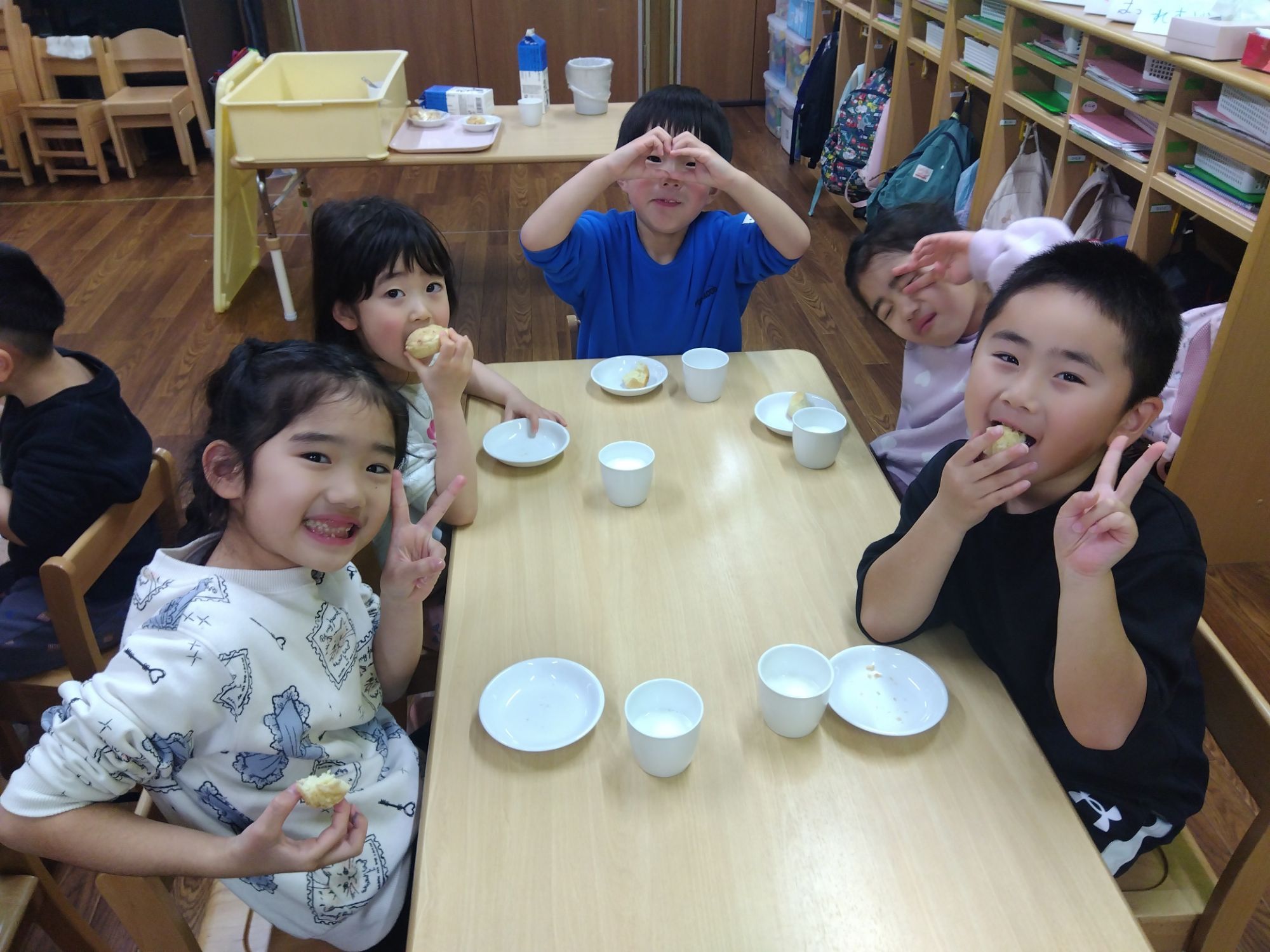 幼児組さんもひな祭りのおやつ🧁おいしくいただきました😋