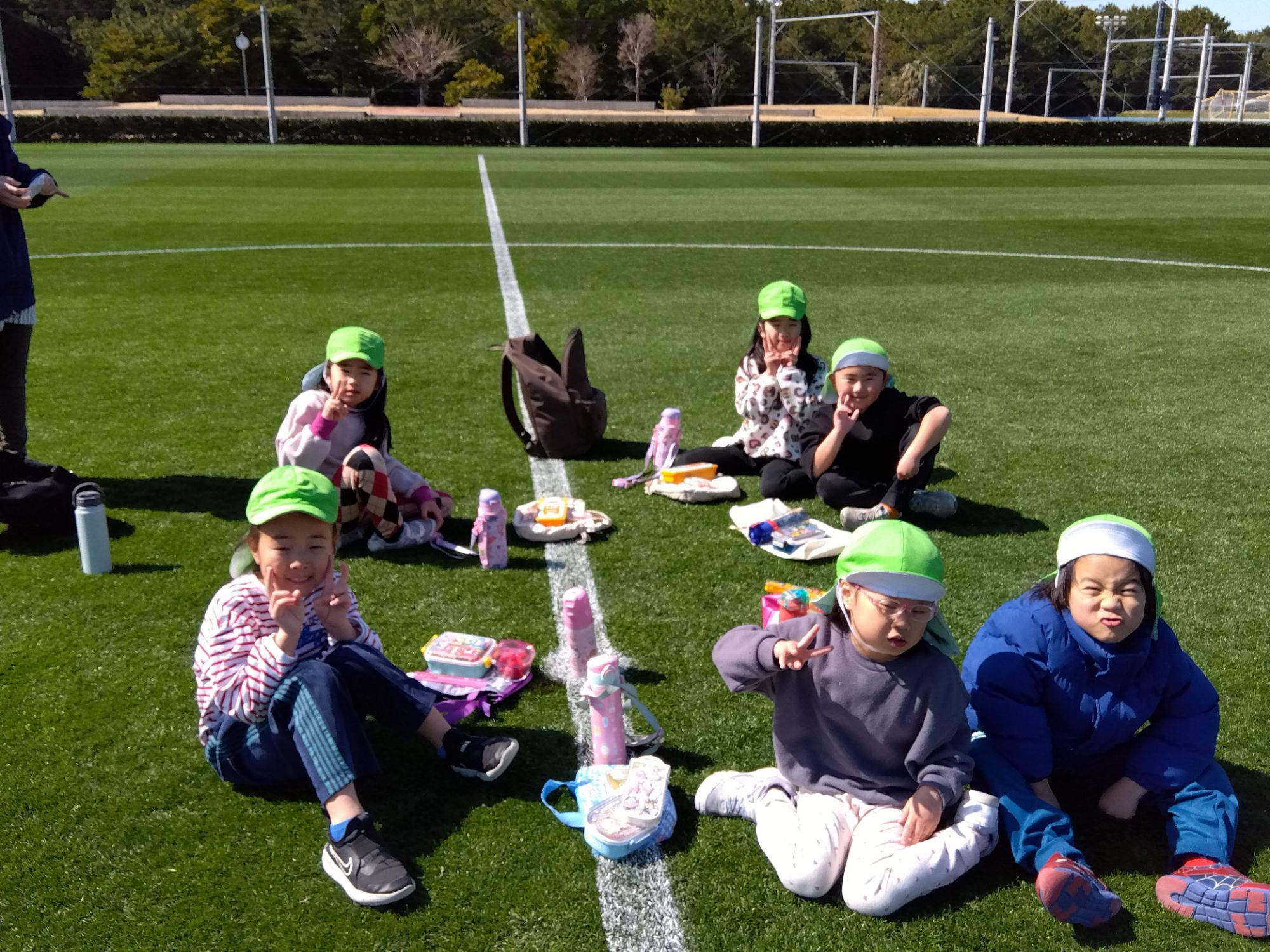 たくさん体を動かして遊んだ後には嬉しいお弁当🍱♪…の前にみんなでパシャリ📸
