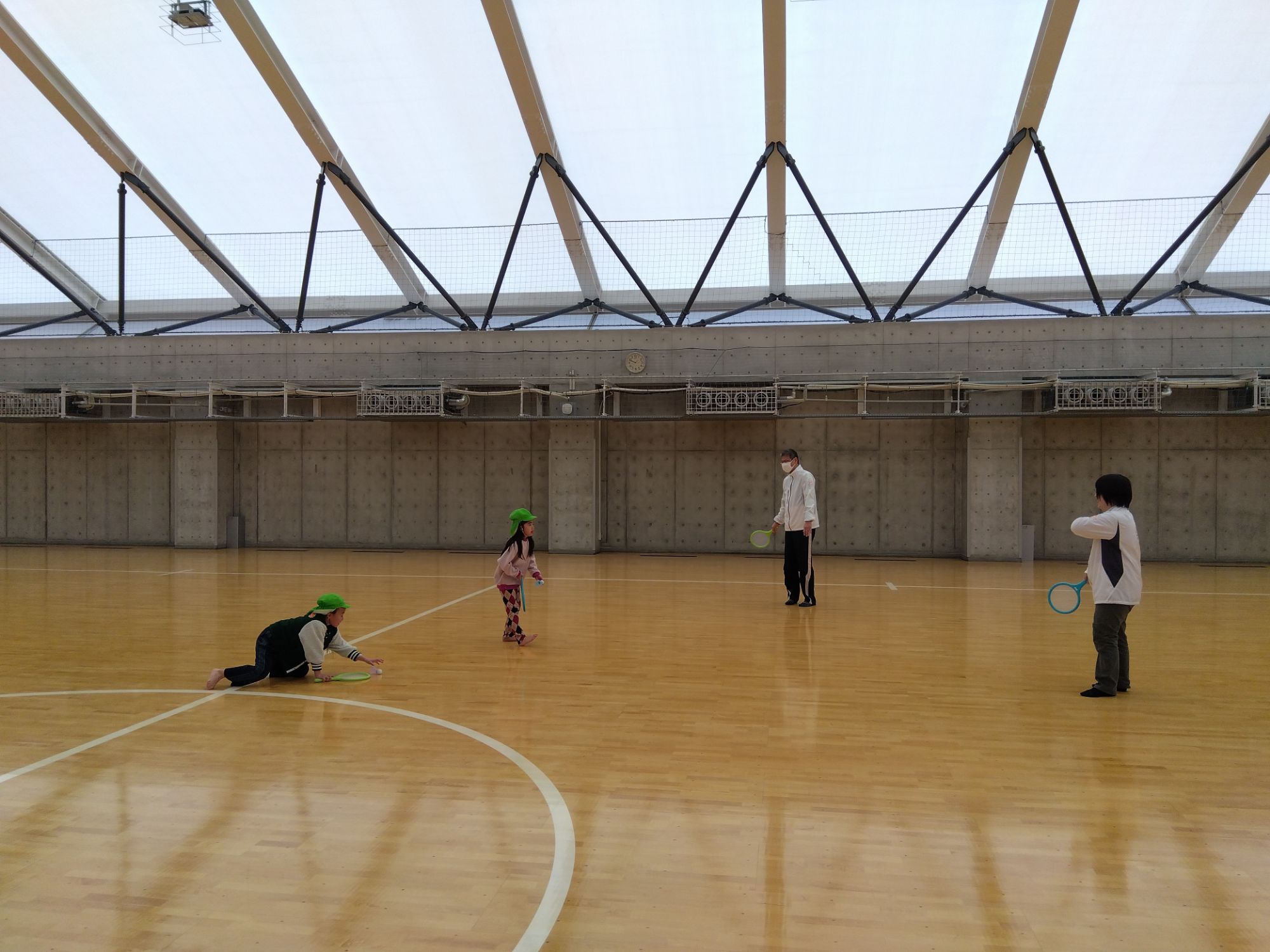 外では風に負けて思うようにできなかったので今度は室内でバドミントンとフリスビーに再チャレンジ!!