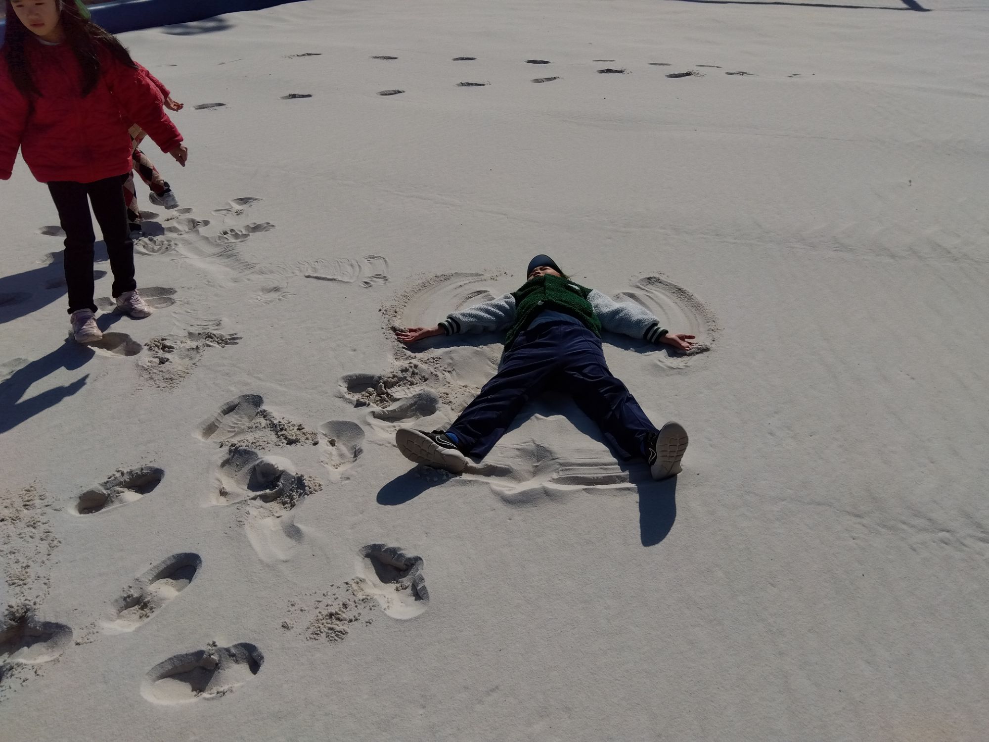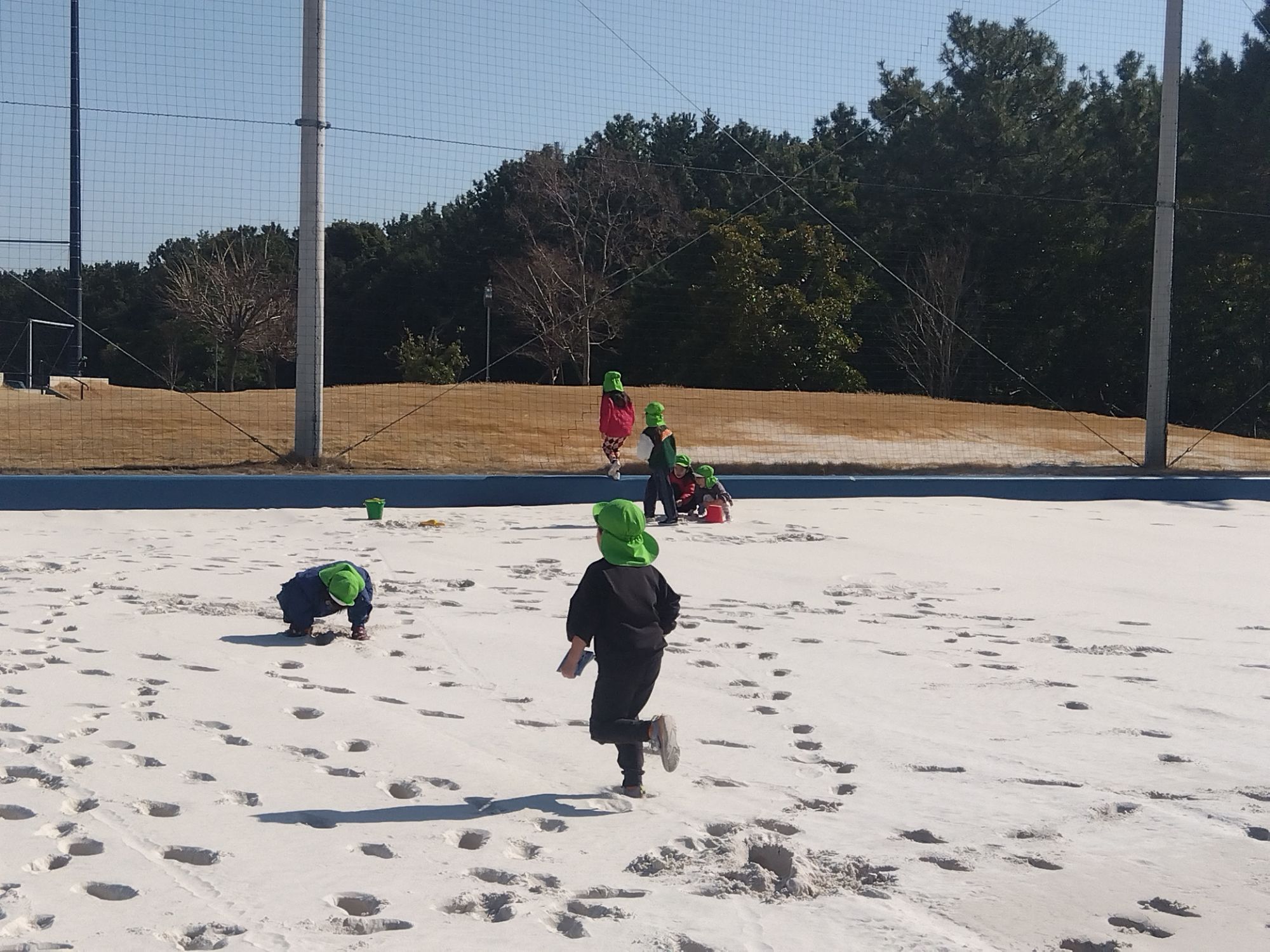 走ってみるとなんだか走りにくい…足が深く入るところと浅いところがある!砂が雪みたい❅など色々な発見をする姿も見られました😀✨️
