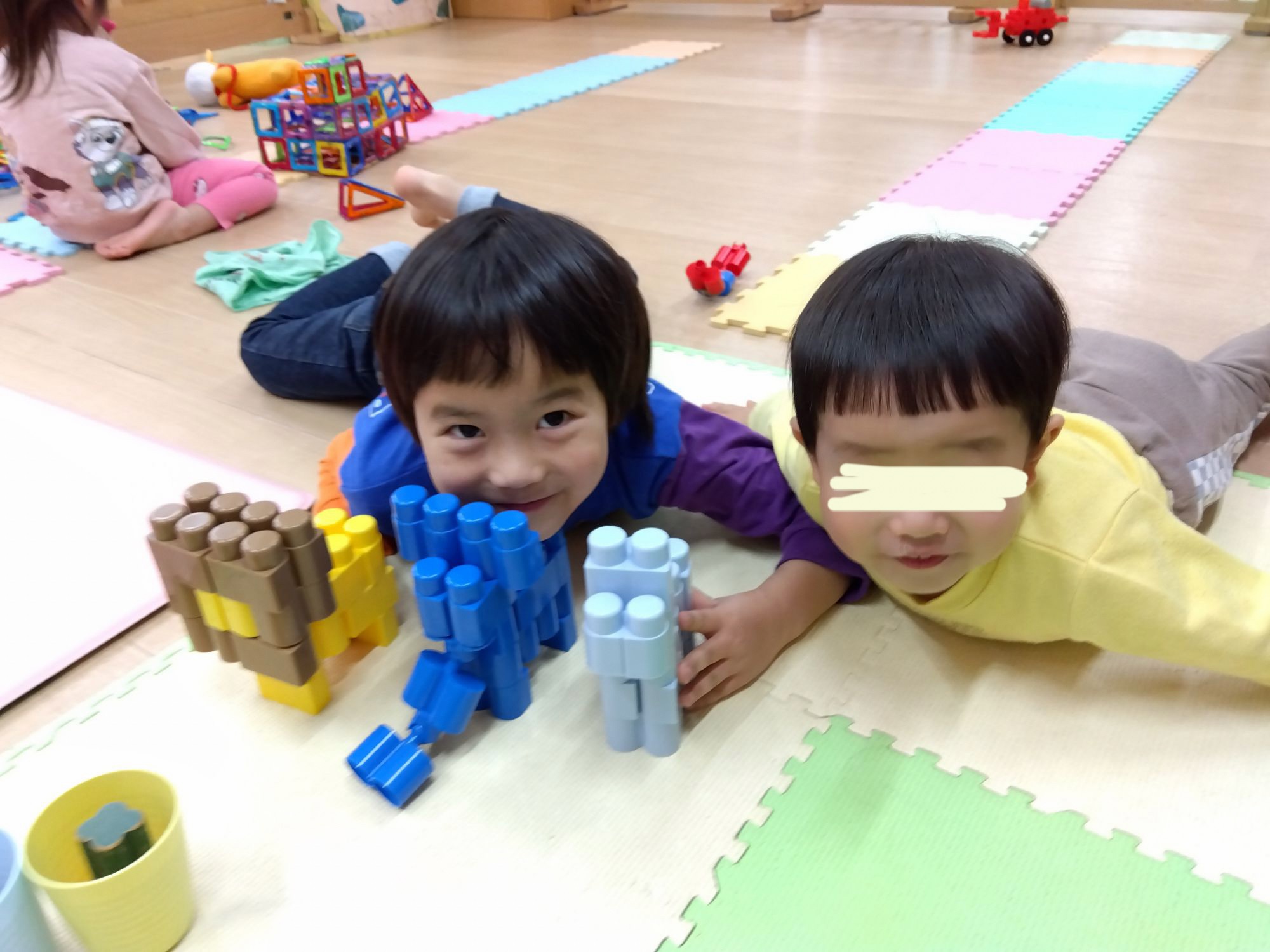 Bブロックだけではなく、様々なブロックでも応用力、想像力を発揮させお友達と言葉による伝え合いを楽しみながら協力して作りあげる姿が増えているな…と実感しています!!