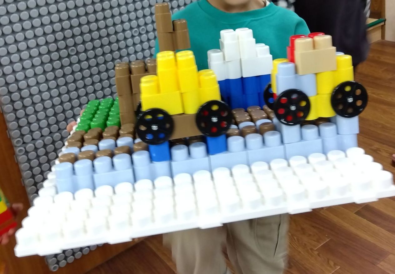 その後も幼児クラスに戻ってからは『お馬さん🐎』と『お馬さんが飲むミルク🍼』に芝生も作って『動物園』が完成!