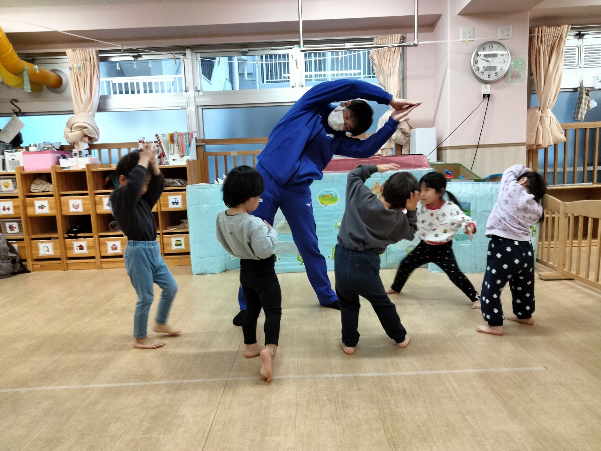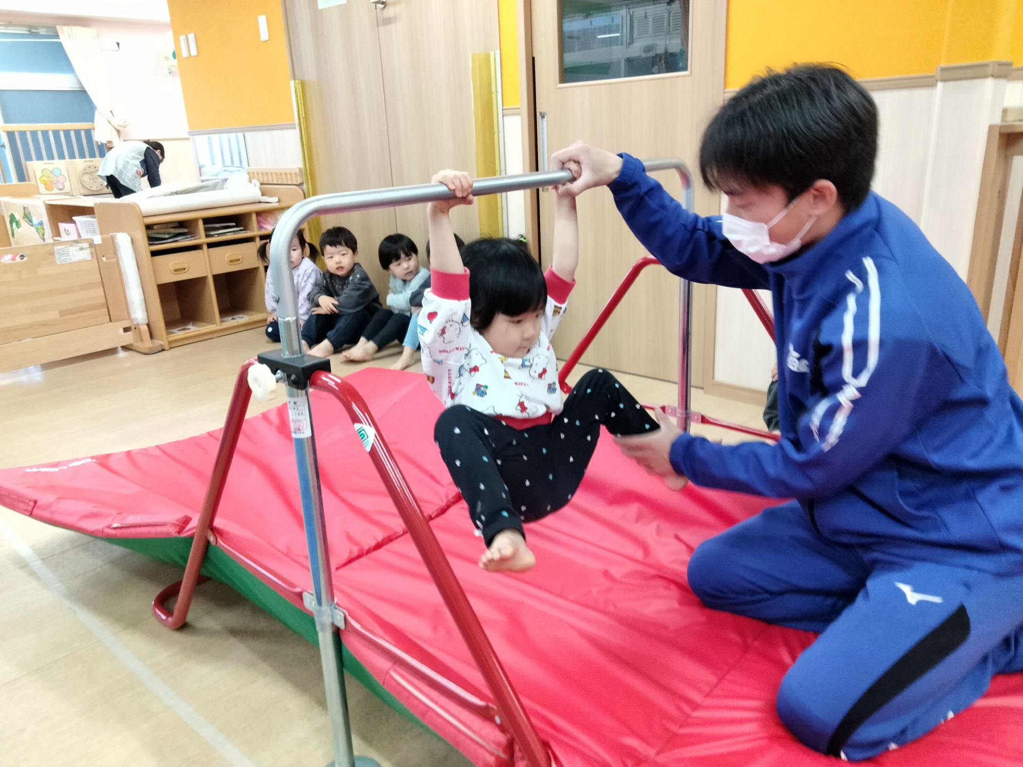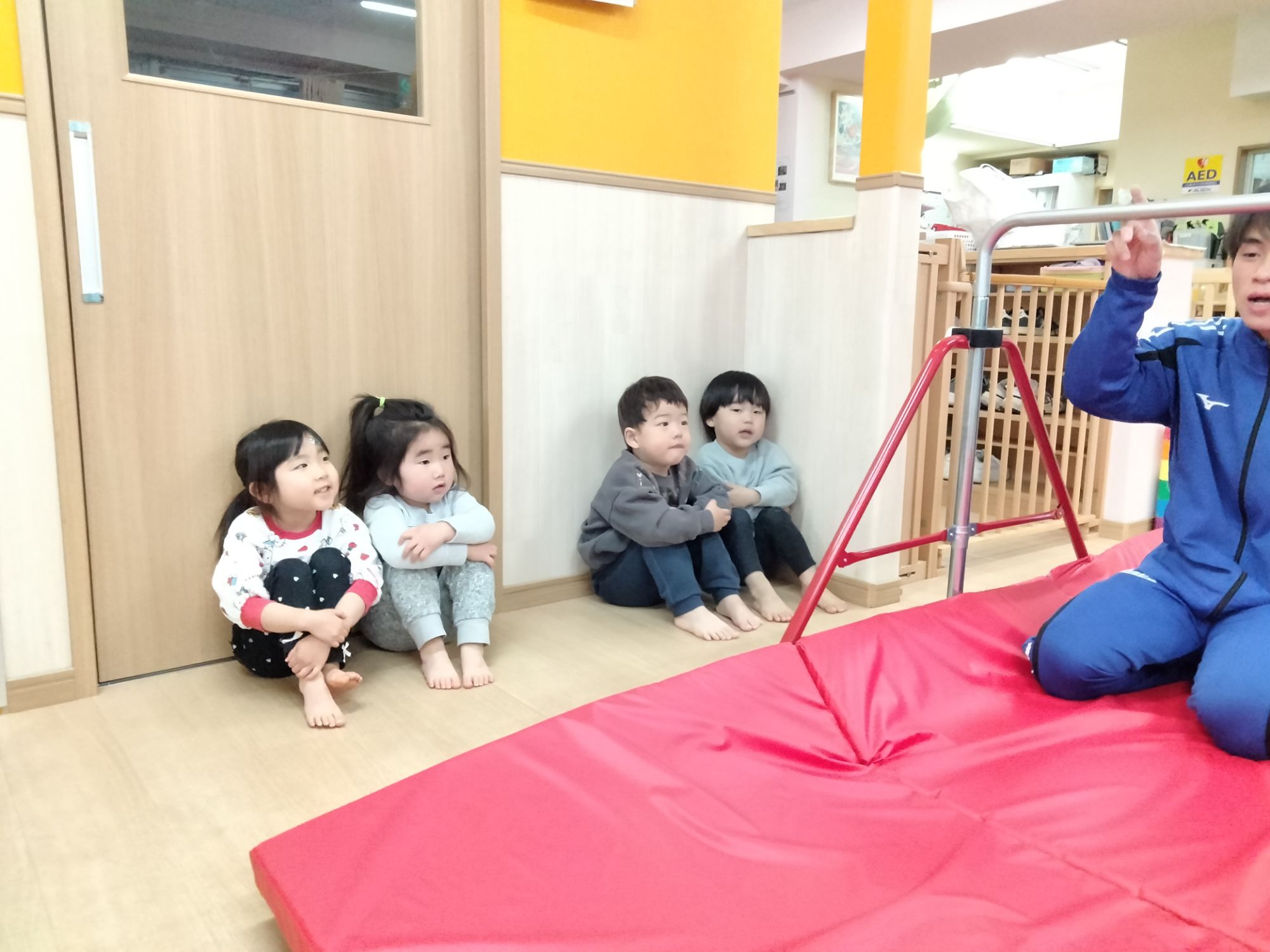お兄さんお姉さんのお部屋ではどんな体操に挑戦するのか、ドキドキワクワクな子どもたちです🩷