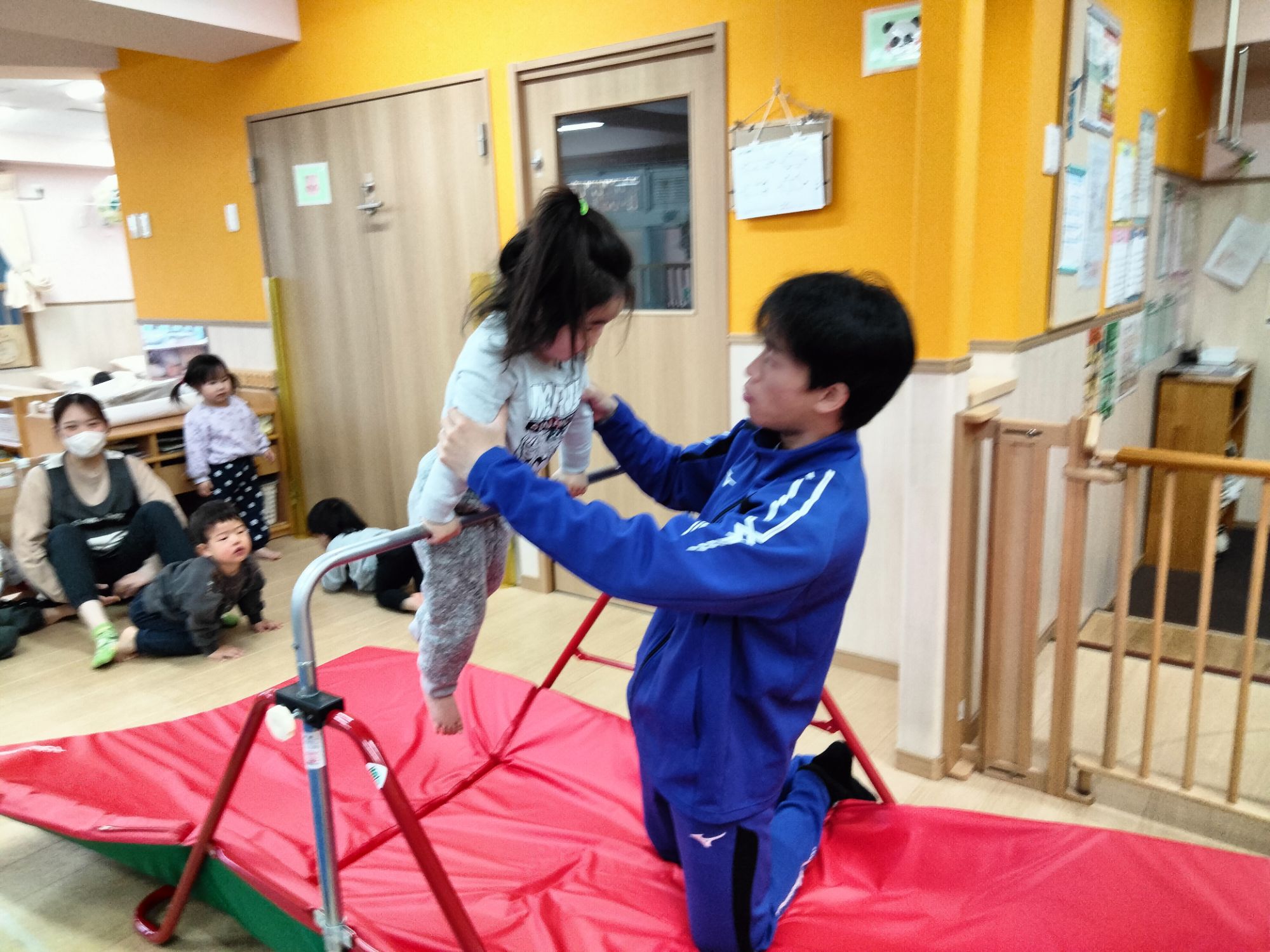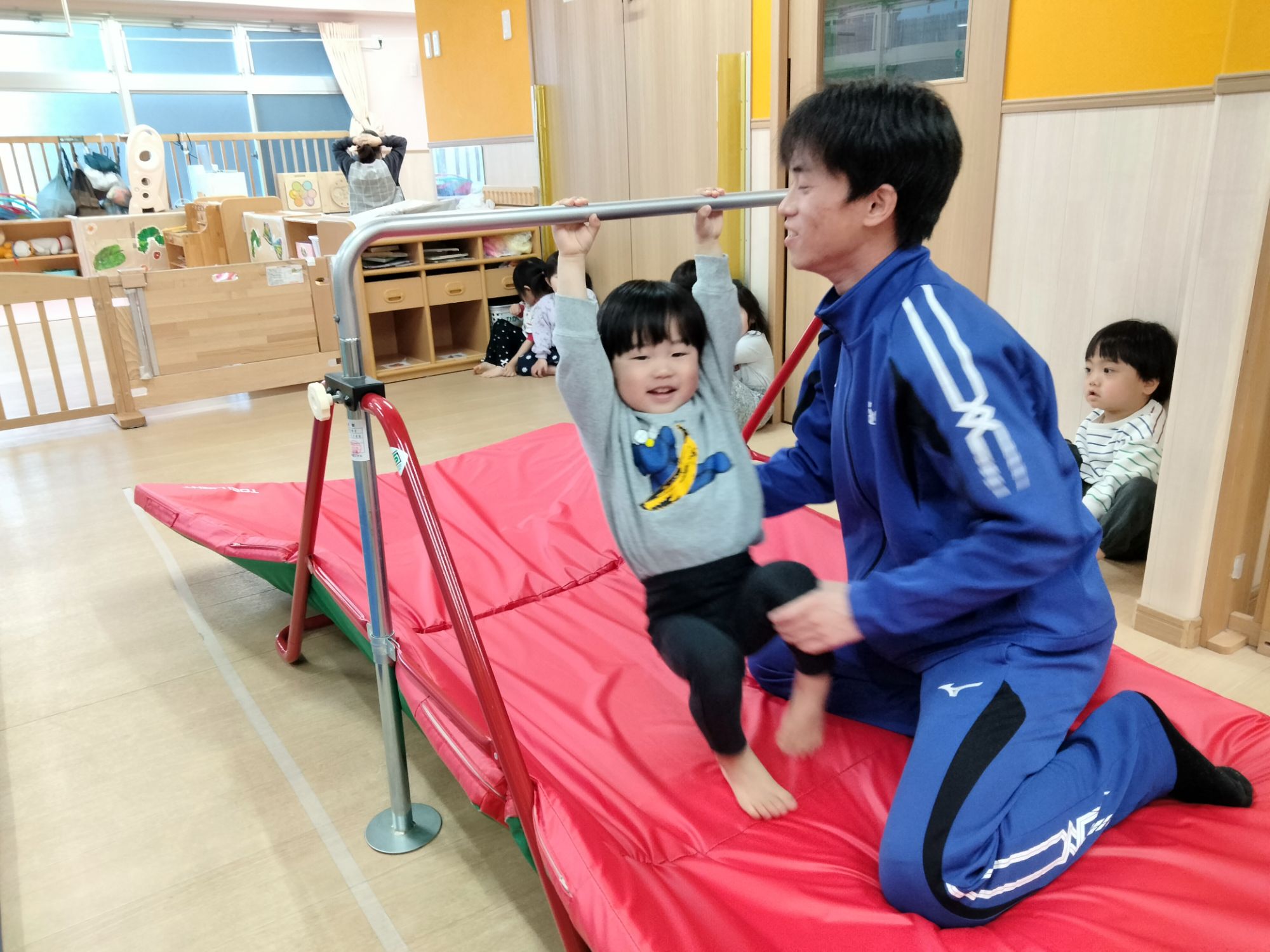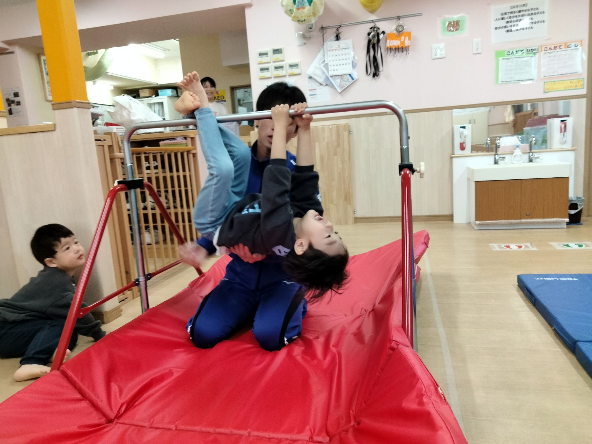 お兄さんお姉さんのお部屋ではどんな体操に挑戦するのか、ドキドキワクワクな子どもたちです🩷