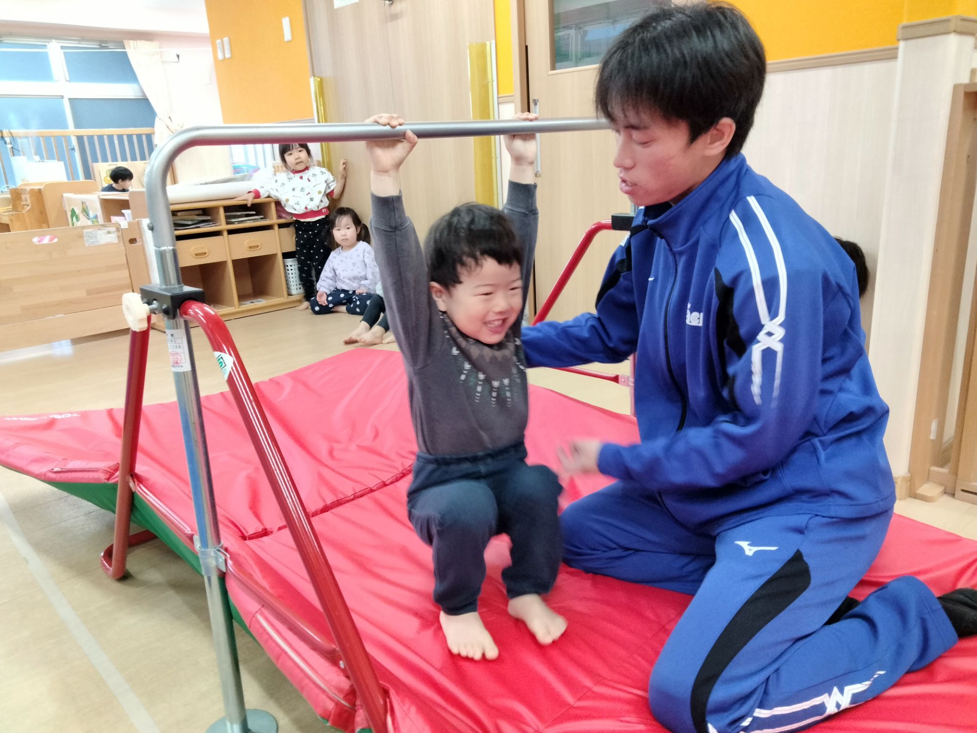 支え無しでブラブラ浮く感覚を楽しむ子どもたちです!