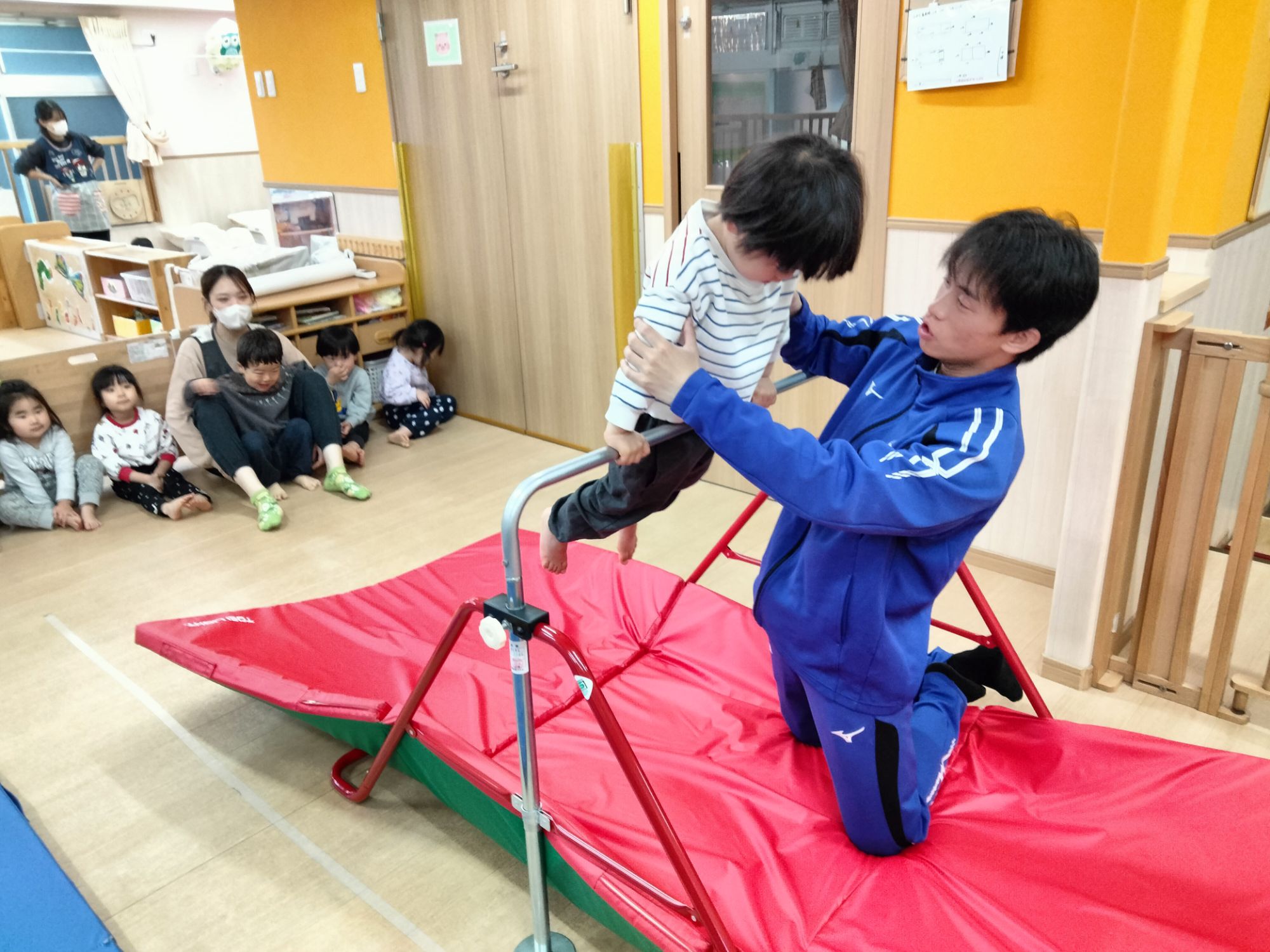 待っている間はお友だちを応援したり、戻ってきたら大丈夫だよ怖くないよと優しく言葉をかけてあげたりと体操のなかで優しさ溢れる姿が沢山見られました🥰