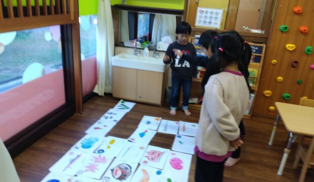 登園すると、“good morning”と挨拶したり英語で覚えた歌を口ずさんだり…と自然と子ども達の口から英語🔤が出てくる場面も多くなりました✨