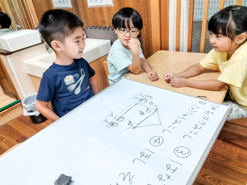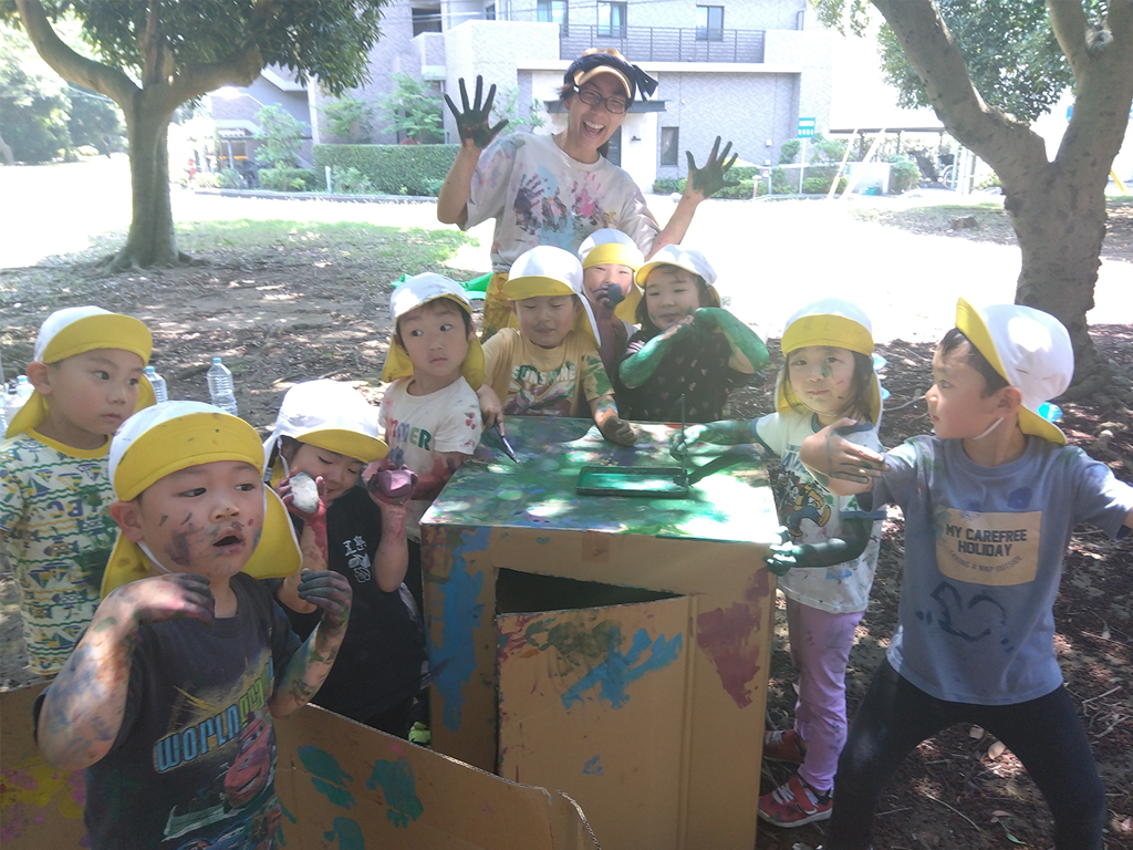 大人では思いつかないようなこどもたちの発想に、「そうきたかー!」と保育士の先生たちと一緒に驚き、楽しみ、面白がり、終わった後は先生たちとふりかえりの時間を設け、それぞれのこどもの様子についてじっくりと話し合うことを大切にしています。