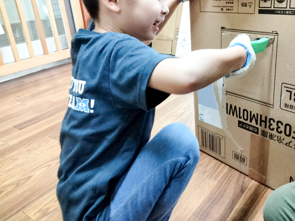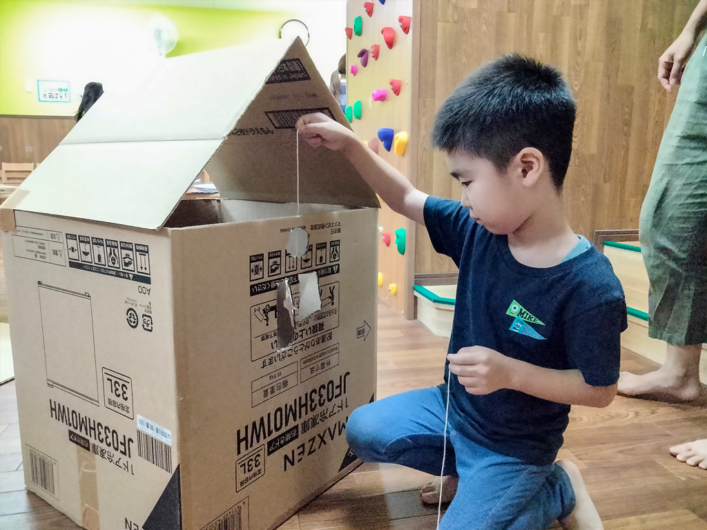 段ボールをくり抜く作業