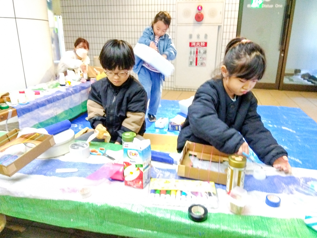 造形あそび講師として、千葉県の保育園で子どもたちと、千葉明徳短期大学では非常勤講師として学生たちと日々造形活動を行なっている。