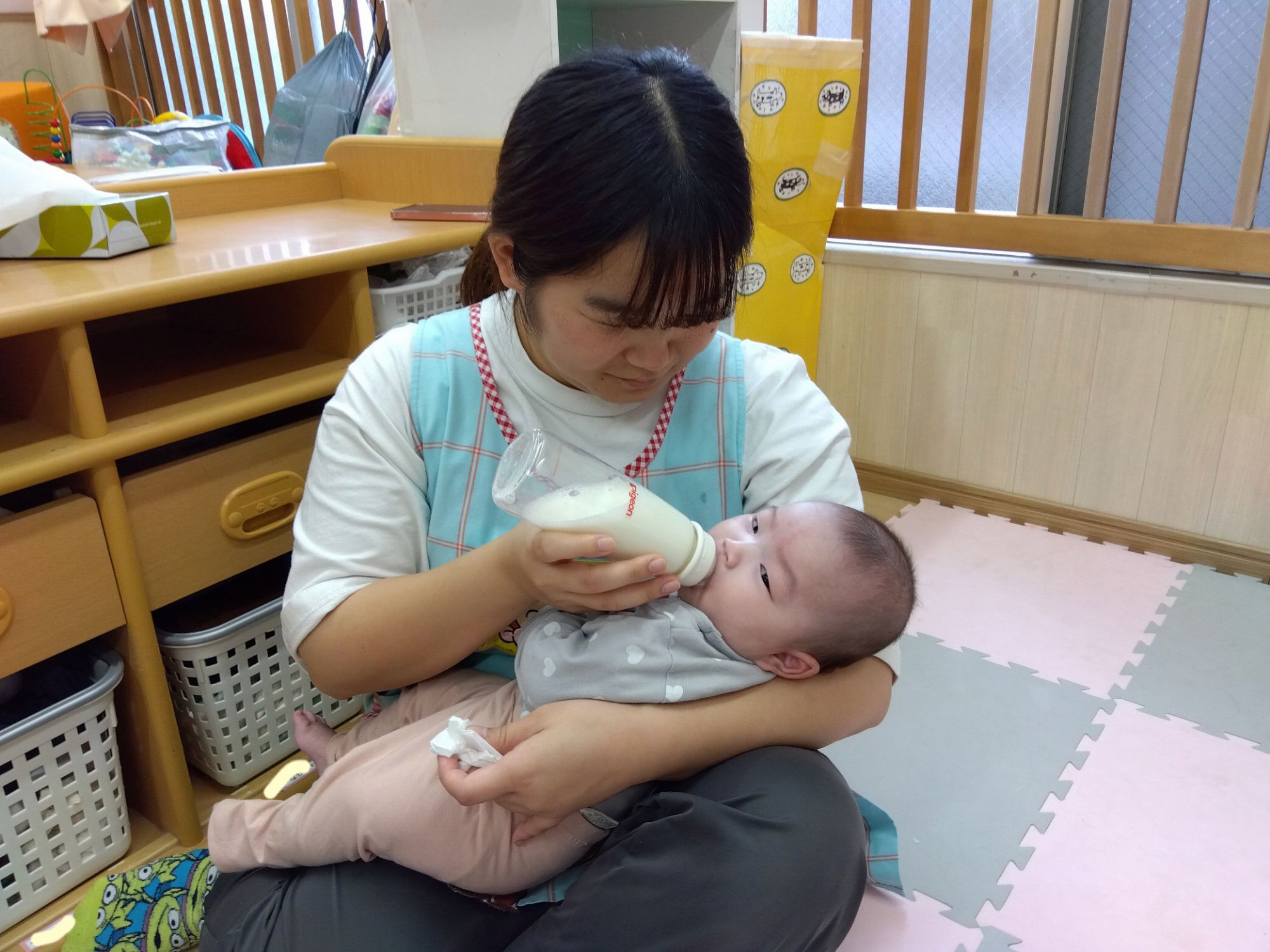 個々のリズムに合わせて、保育者が1人ひとりに愛情たっぷり💕お話しながらあげています!