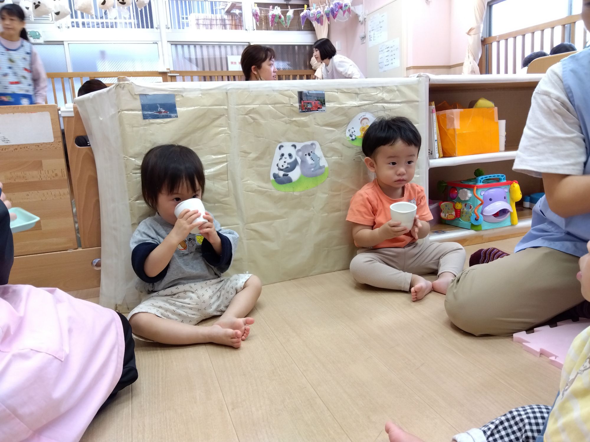 水分補給は、子ども達の体調や気候などに合わせてこまめに行っています!おおよそ1時間半〜2時間くらい🤗1回の水分量は大体50〜100mlくらいです。